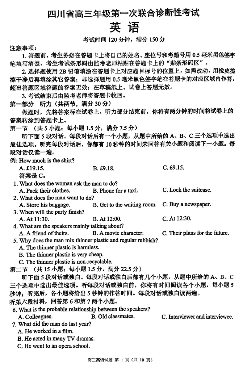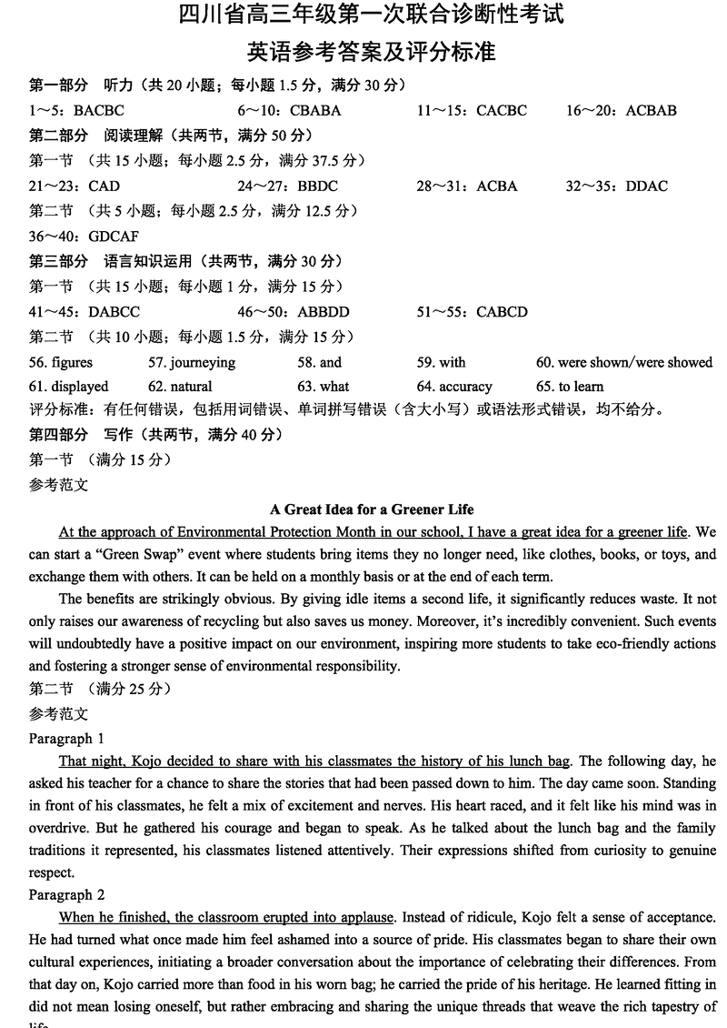 四川蓉城名校联盟2025届高三上学期第一次联考英语考试已于近日开考,为方便考生考后及时查看考试情况,查漏补缺、弥补不足,本文整理了试题答案解析相关信息!