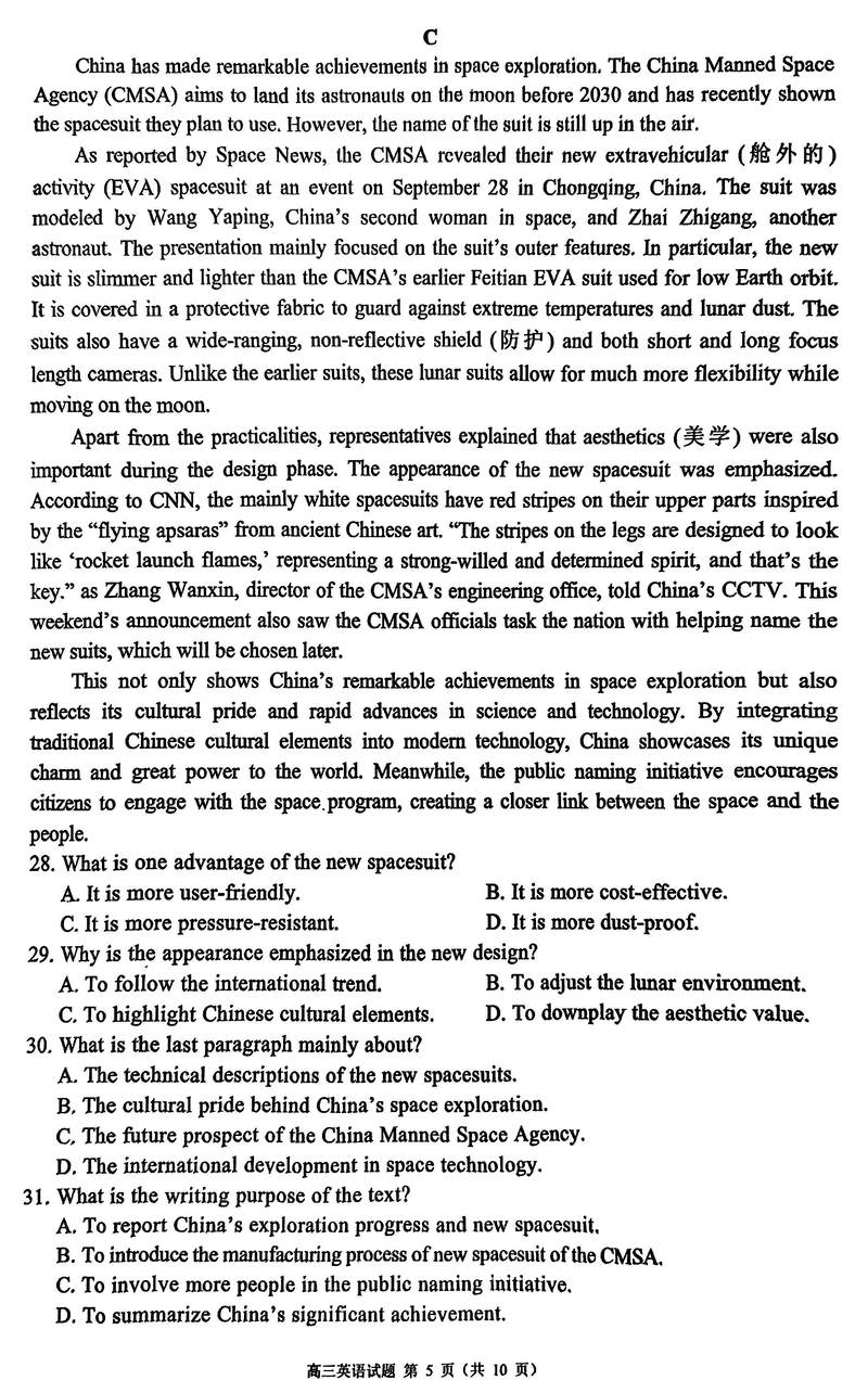 四川蓉城名校联盟2025届高三上学期第一次联考英语试题及答案