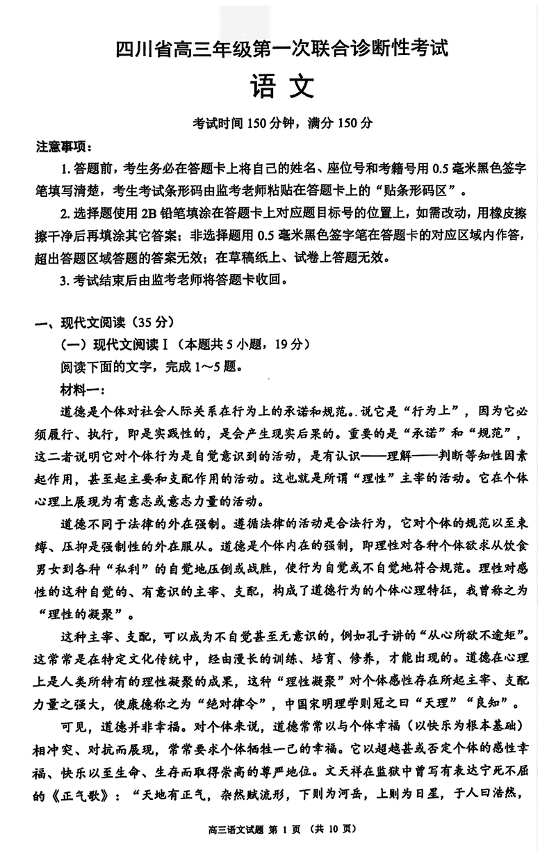 四川蓉城名校联盟2025届高三上学期第一次联考语文考试已于近日开考,为方便考生考后及时查看考试情况,查漏补缺、弥补不足,本文整理了试题答案解析相关信息!