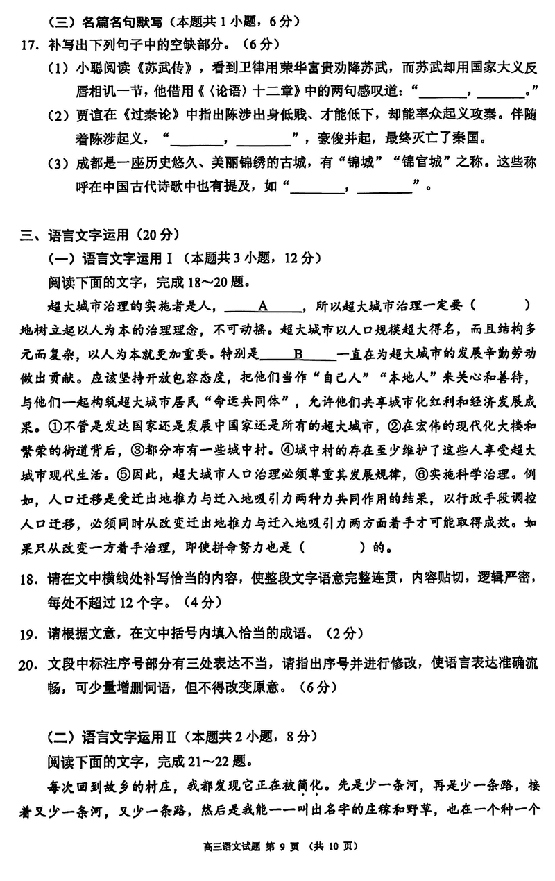 四川蓉城名校联盟2025届高三上学期第一次联考语文试题及答案