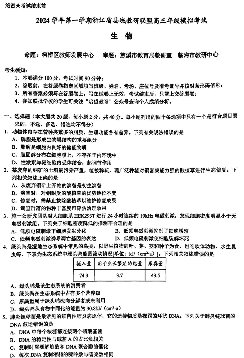 浙江县域教研联盟2025届高三上学期摸底考生物考试已于近日开考,为方便考生考后及时查看考试情况,查漏补缺、弥补不足,本文整理了试题答案解析相关信息!