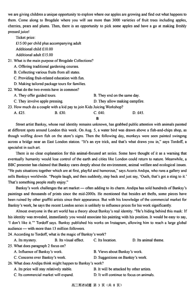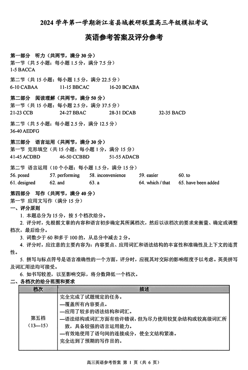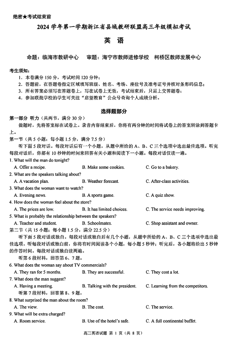 浙江县域教研联盟2025届高三上学期摸底考英语考试已于近日开考,为方便考生考后及时查看考试情况,查漏补缺、弥补不足,本文整理了试题答案解析相关信息!