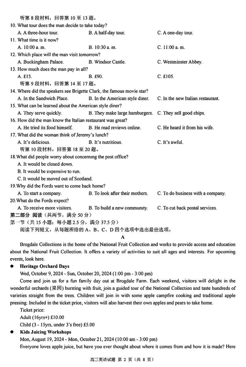 浙江县域教研联盟2025届高三上学期摸底考英语试题及答案