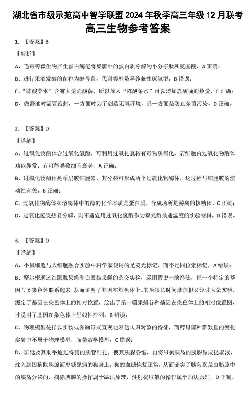 湖北智学联盟2024年秋季高三12月联考生物考试已于近日开考,为方便考生考后及时查看考试情况,查漏补缺、弥补不足,本文整理了试题答案解析相关信息!