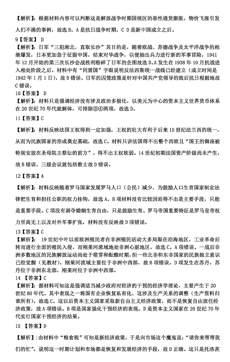 历史试题及答案解析