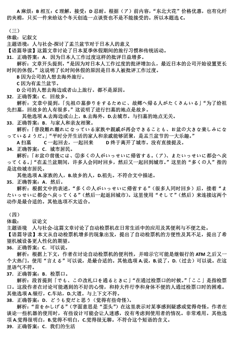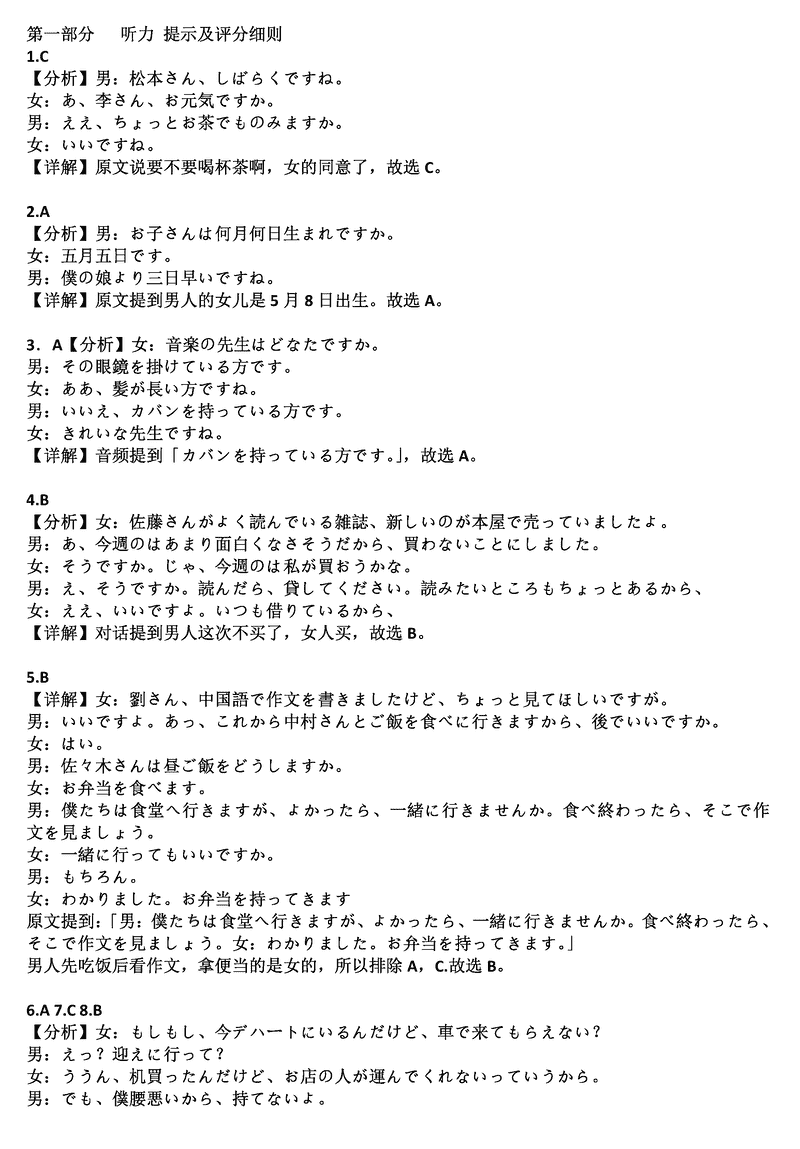 日语试题及答案解析