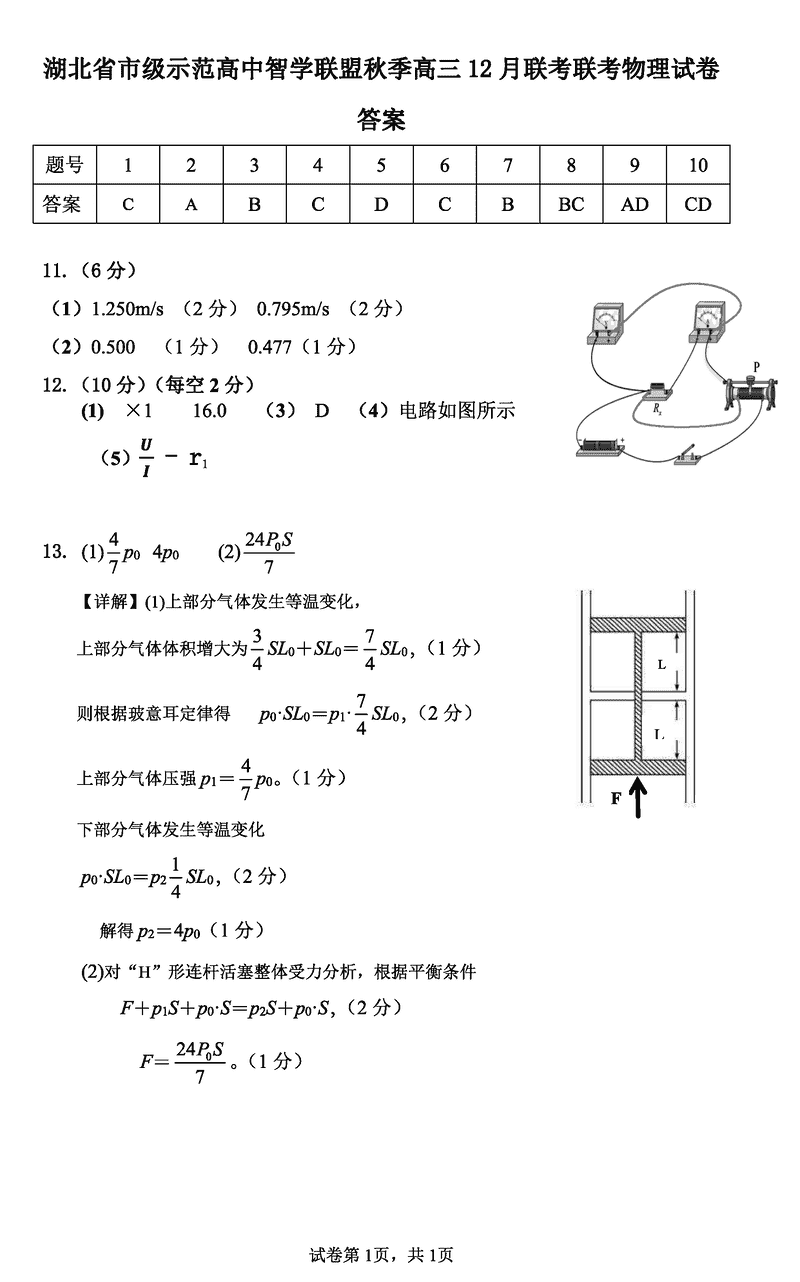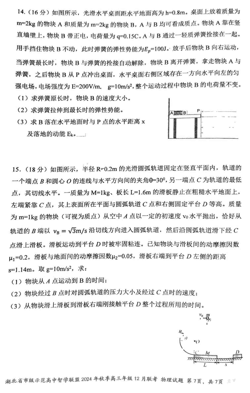 湖北智学联盟2024年秋季高三12月联考物理考试已于近日开考,为方便考生考后及时查看考试情况,查漏补缺、弥补不足,本文整理了试题答案解析相关信息!