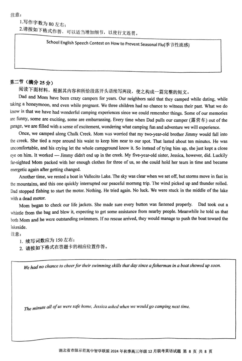 湖北智学联盟2024年秋季高三12月联考英语考试已于近日开考,为方便考生考后及时查看考试情况,查漏补缺、弥补不足,本文整理了试题答案解析相关信息!