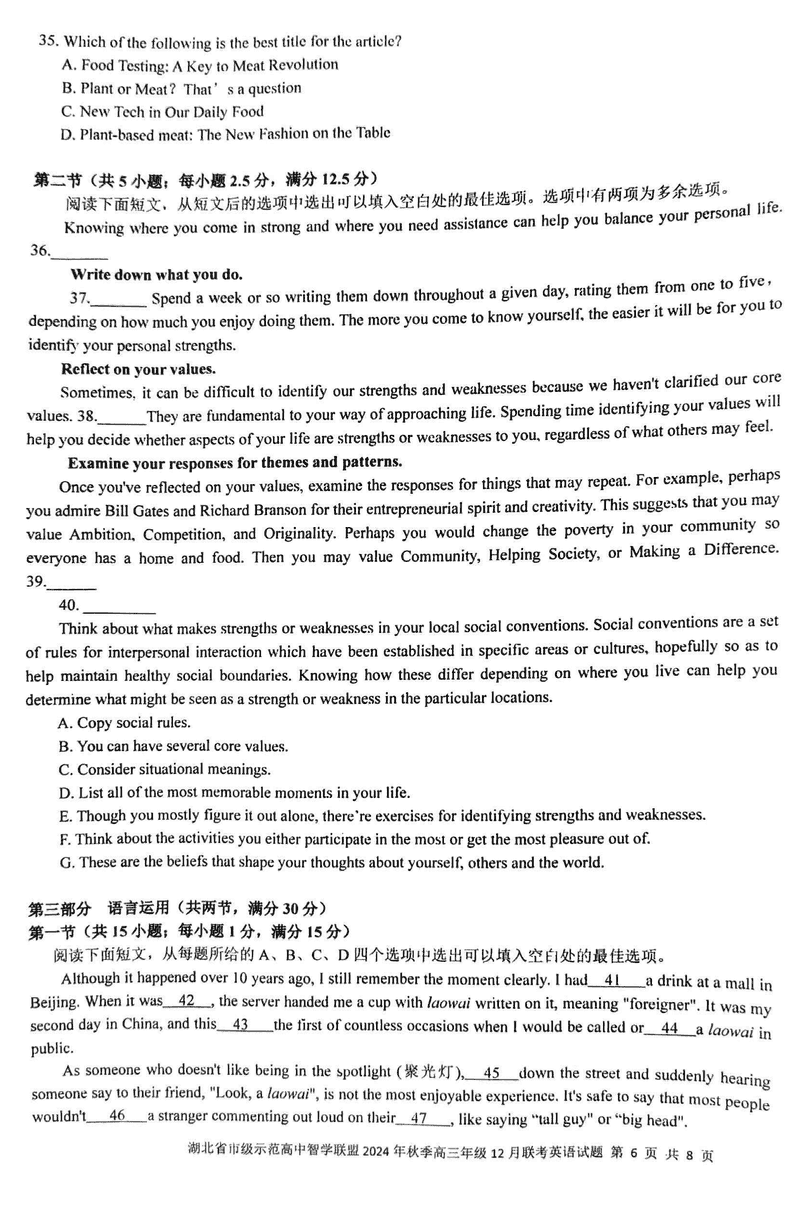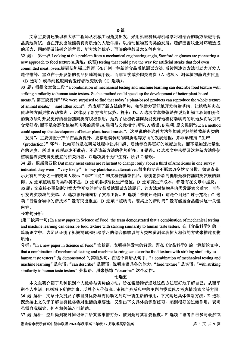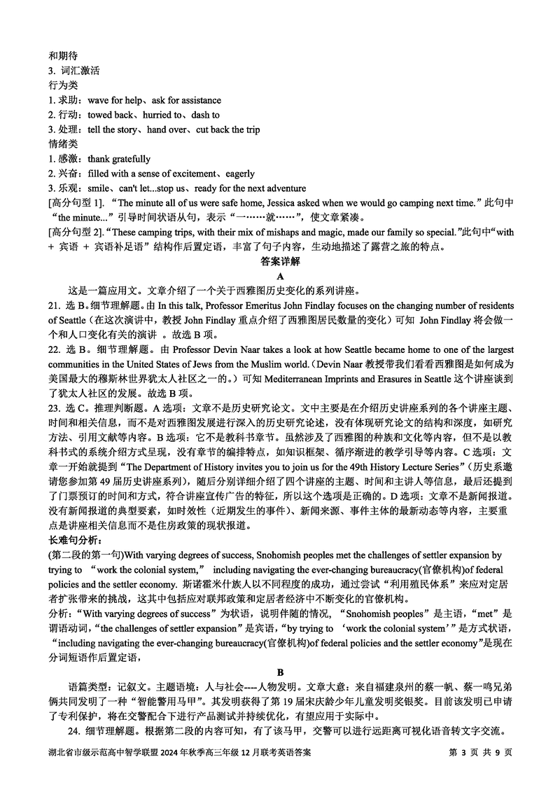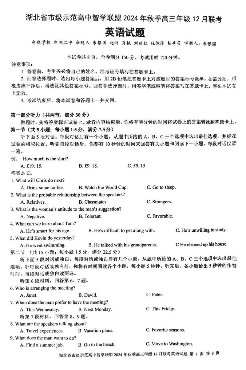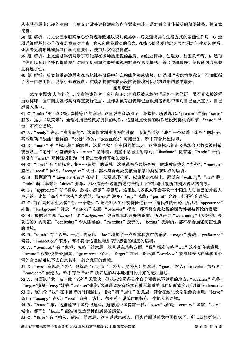 湖北智学联盟2024年秋季高三12月联考英语试题及答案