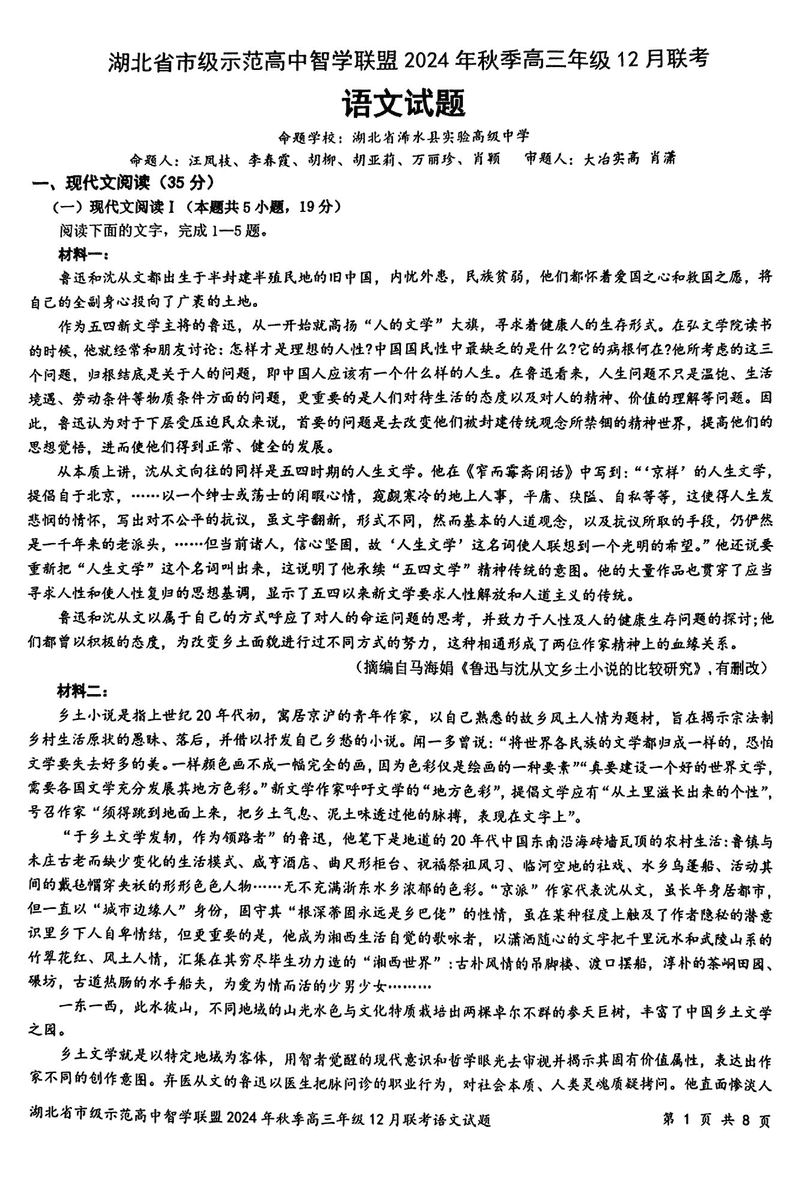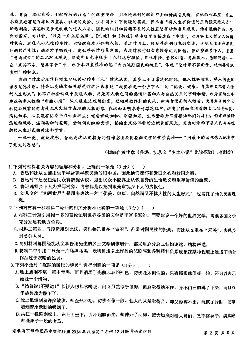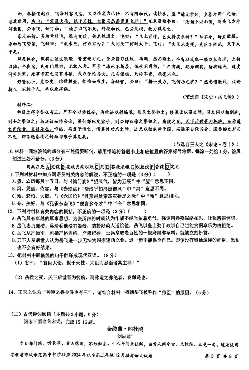湖北智学联盟2024年秋季高三12月联考语文考试已于近日开考,为方便考生考后及时查看考试情况,查漏补缺、弥补不足,本文整理了试题答案解析相关信息!