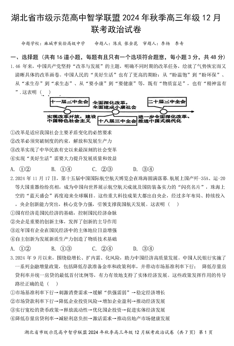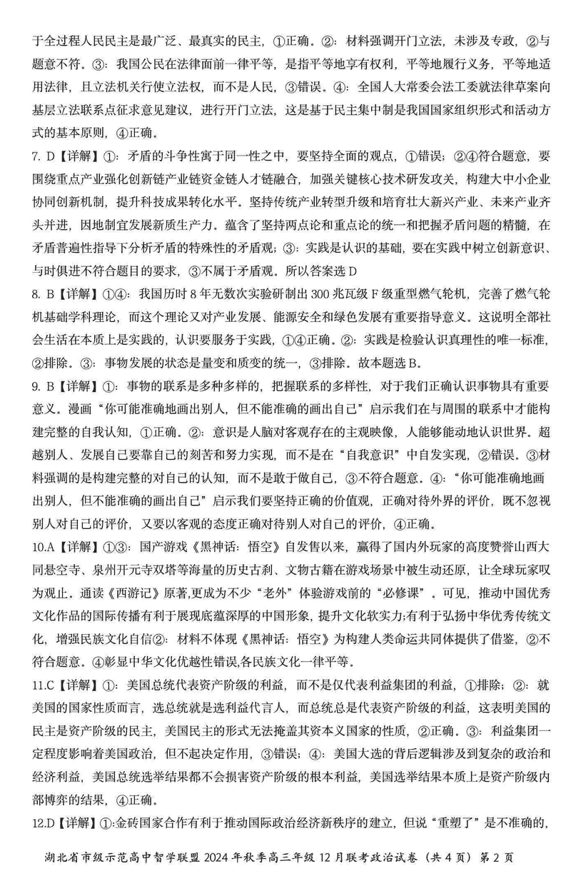 湖北智学联盟2024年秋季高三12月联考政治考试已于近日开考,为方便考生考后及时查看考试情况,查漏补缺、弥补不足,本文整理了试题答案解析相关信息!