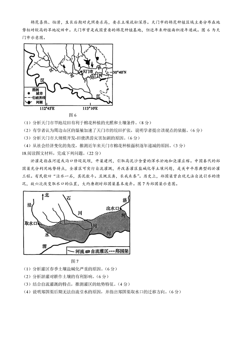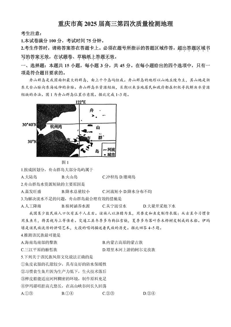 重庆南开中学2025届高三第四次质检地理试题及答案