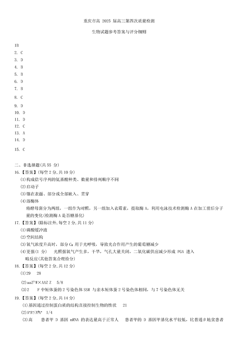 重庆南开中学2025届高三第四次质检生物考试已于近日开考,为方便考生考后及时查看考试情况,查漏补缺、弥补不足,本文整理了试题答案解析相关信息!