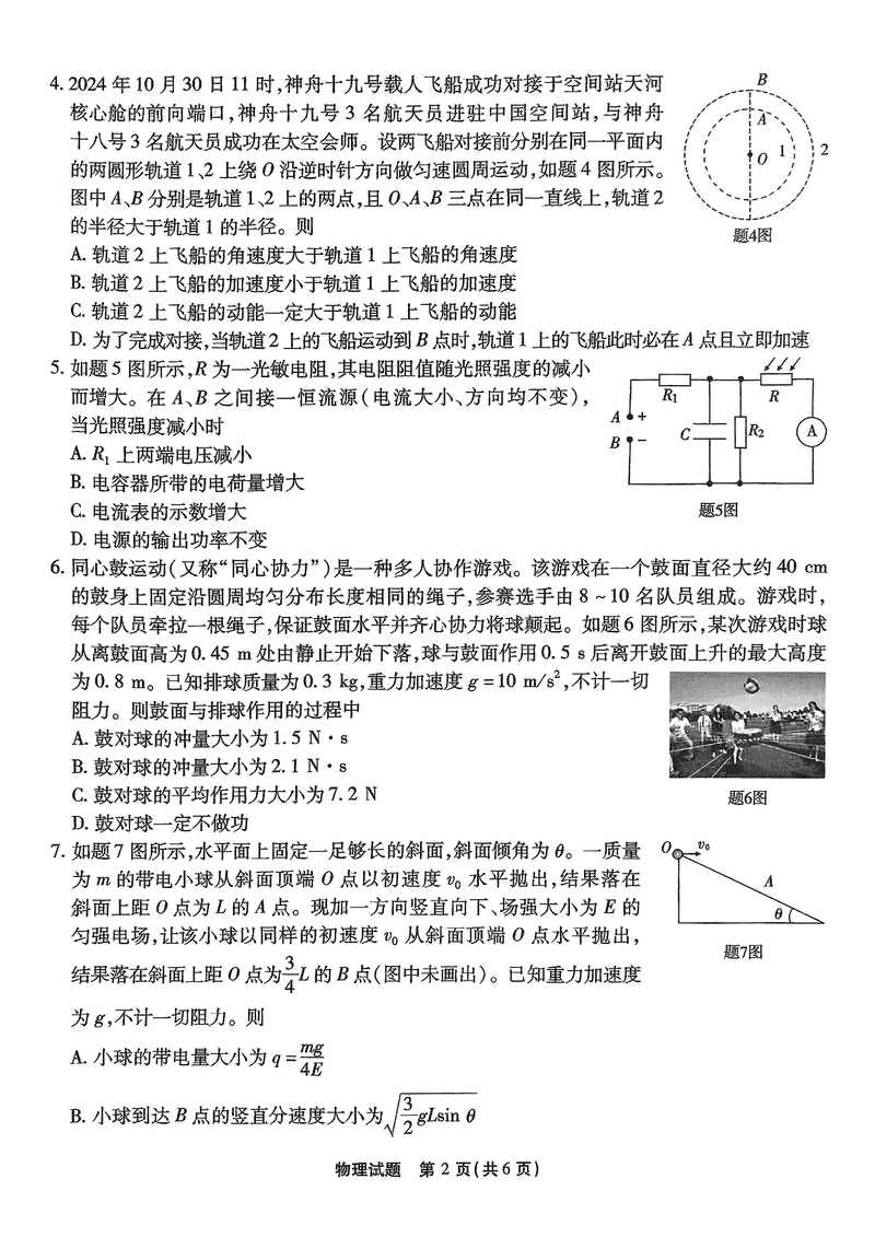 重庆南开中学2025届高三第四次质检物理试题及答案