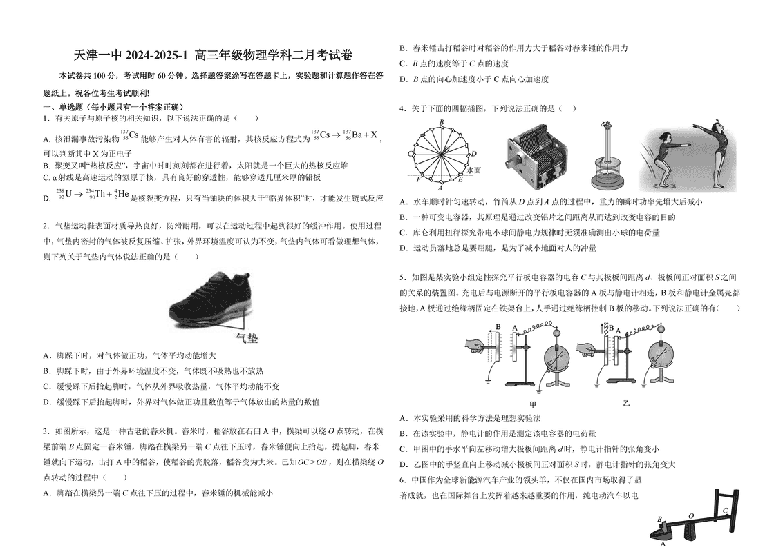 天津一中2024年高三上学期第二次月考物理考试已于近日开考,为方便考生考后及时查看考试情况,查漏补缺、弥补不足,本文整理了试题答案解析相关信息!