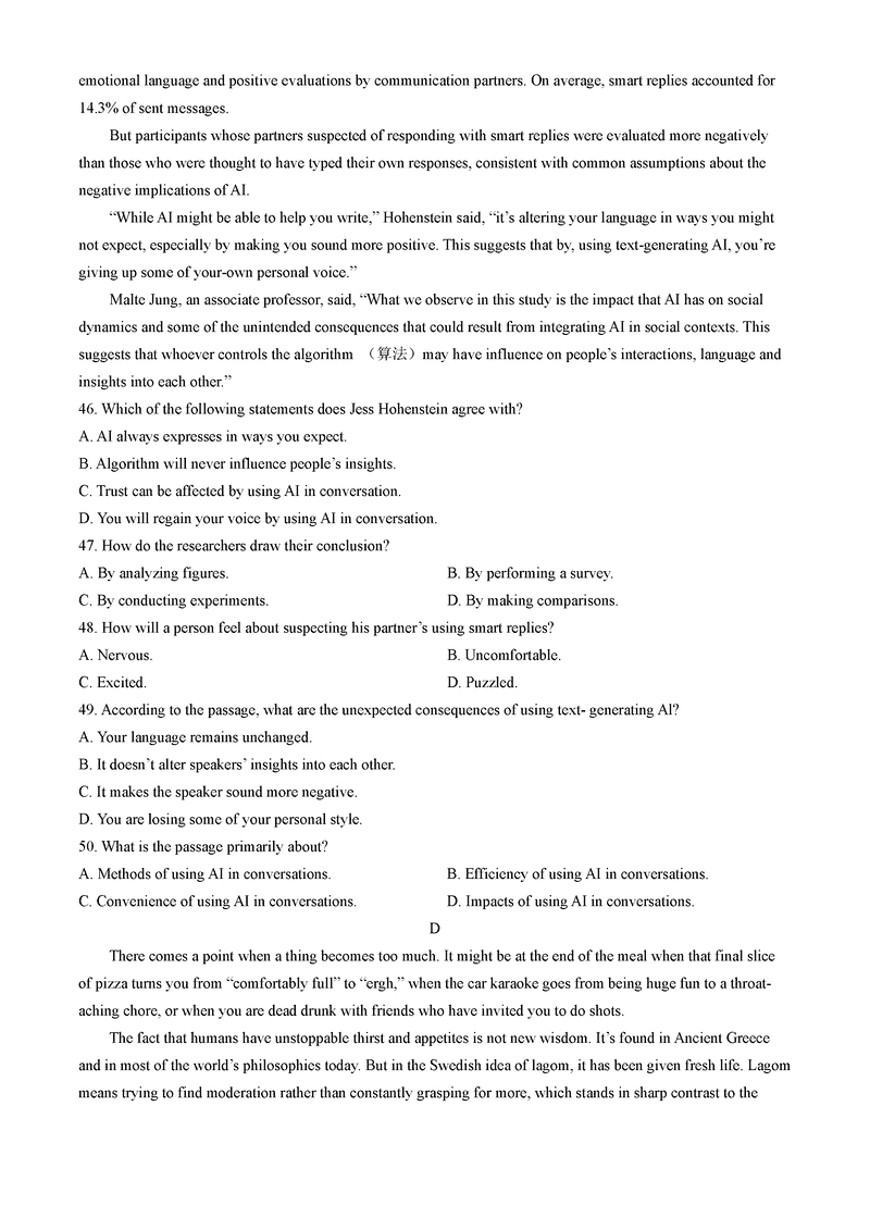 天津 英语试题