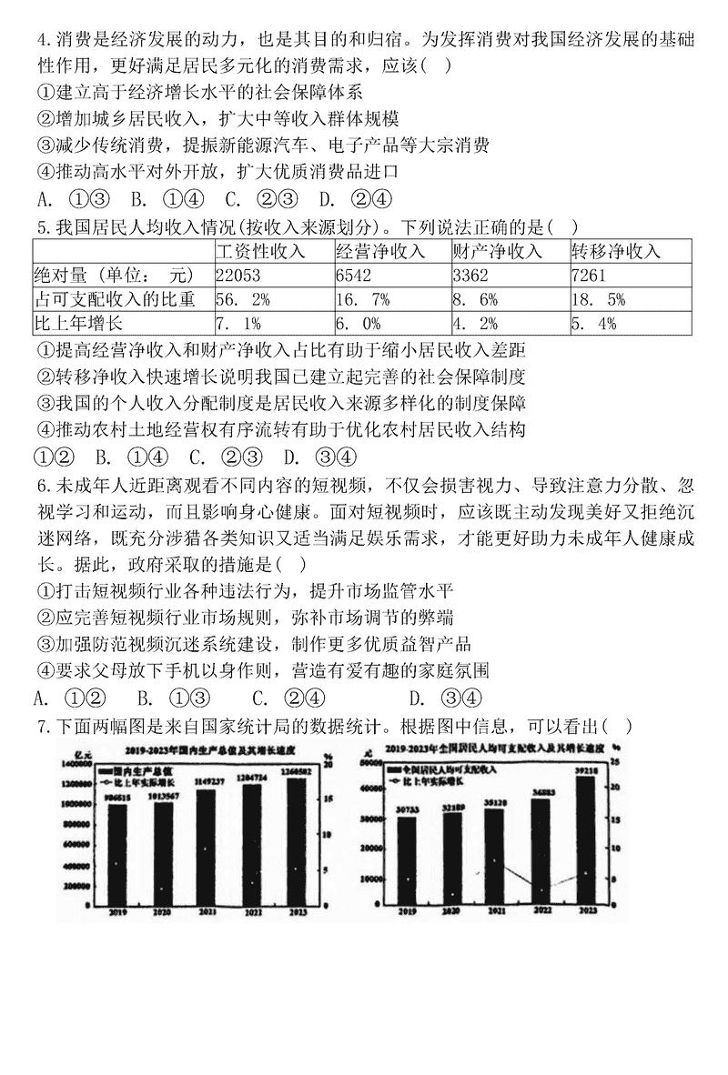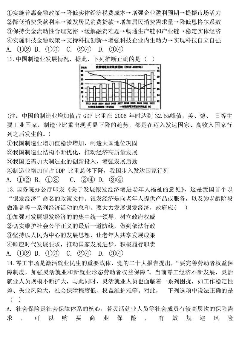 天津一中2024年高三上学期第二次月考政治试题及答案