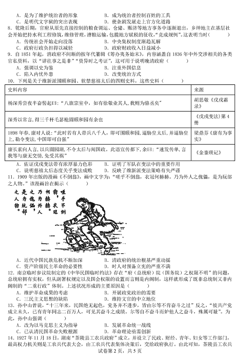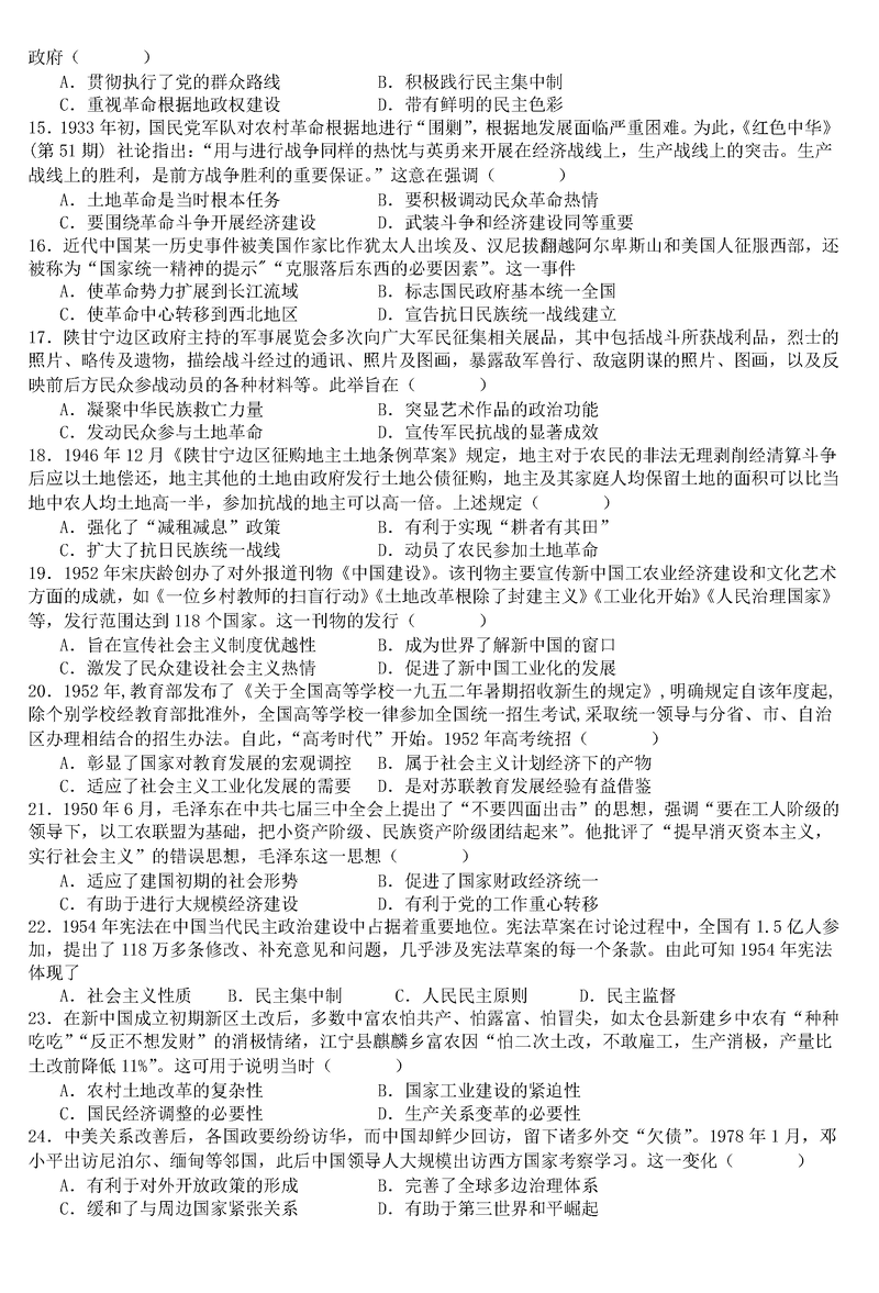 历史试题及答案解析
