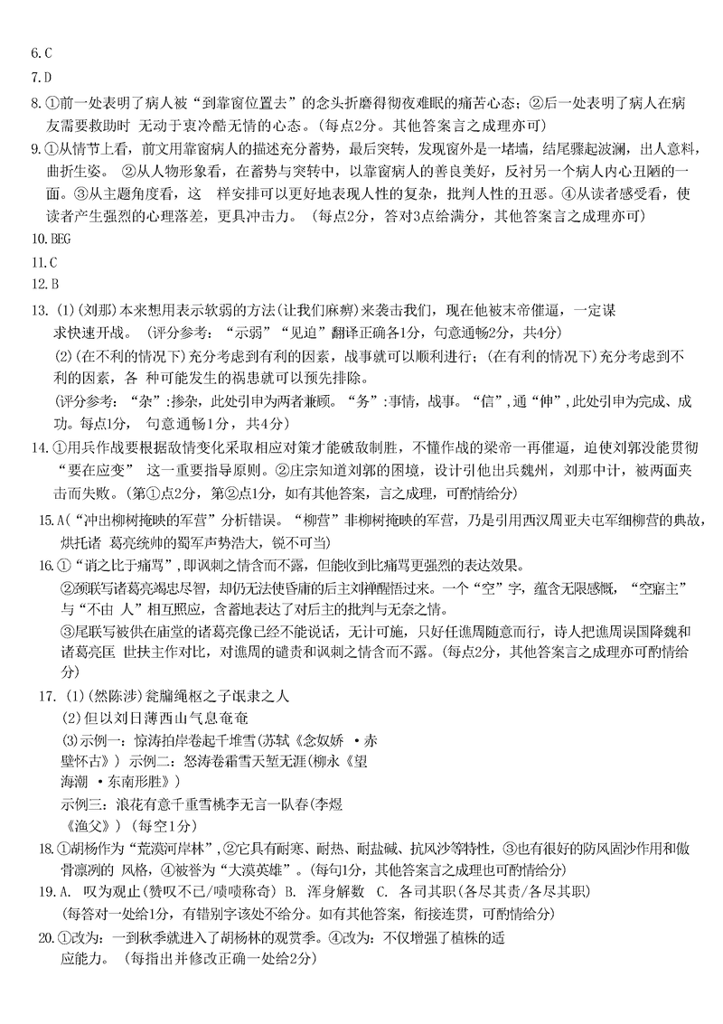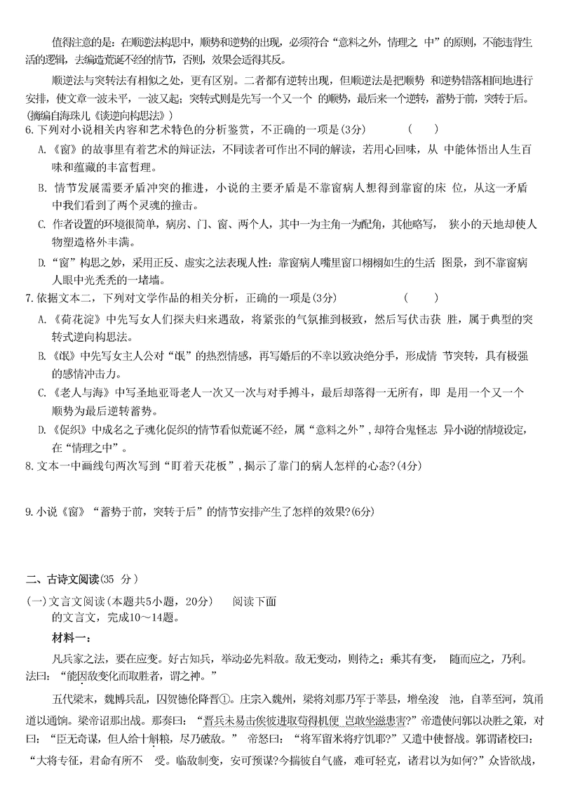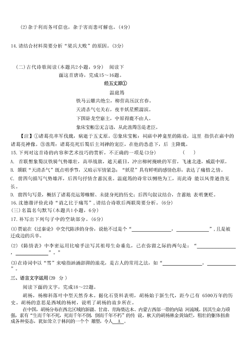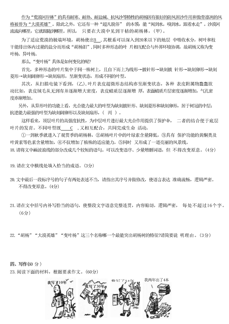 湖南 语文试题