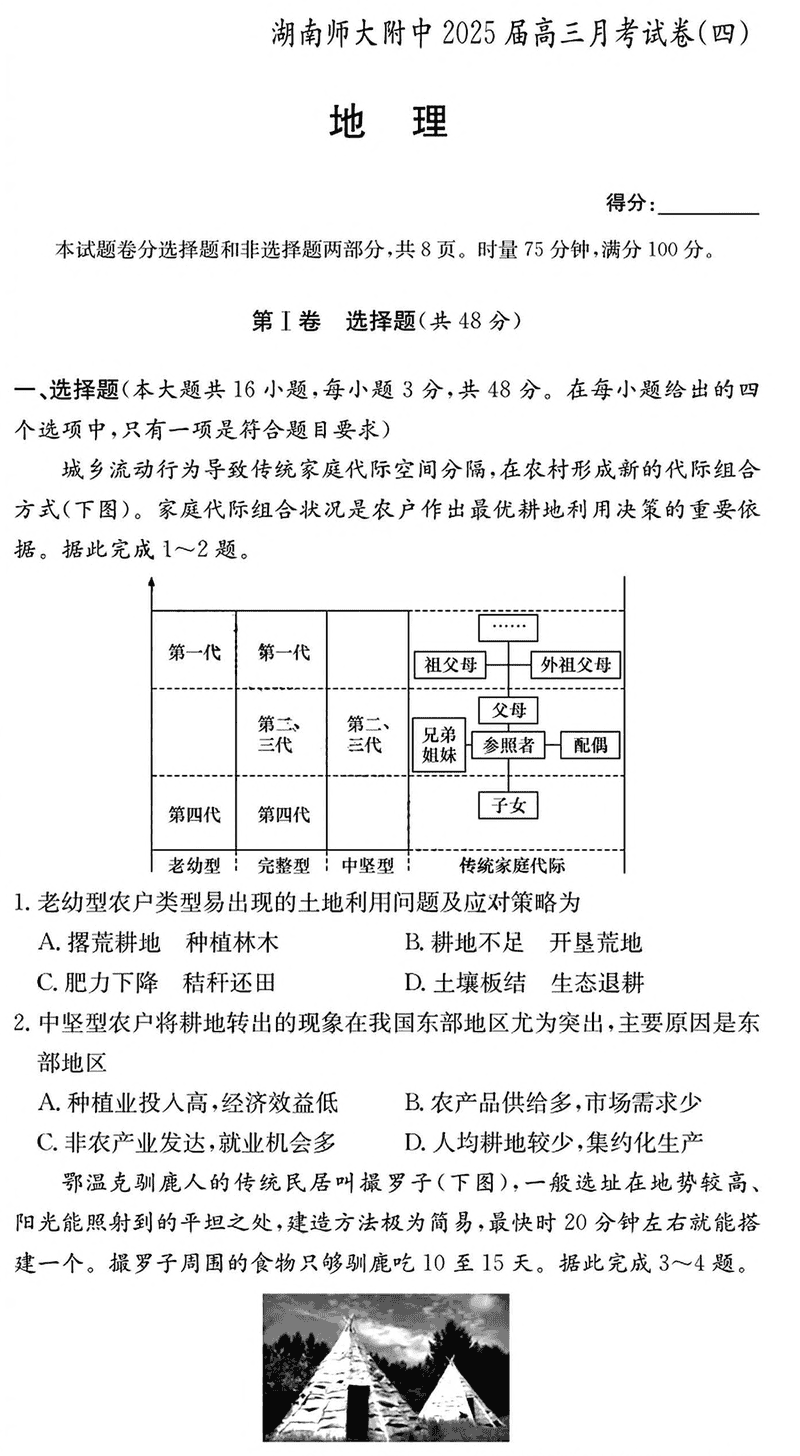 湖南师大附中2025届高三月考试卷(四)地理考试已于近日开考,为方便考生考后及时查看考试情况,查漏补缺、弥补不足,本文整理了试题答案解析相关信息!