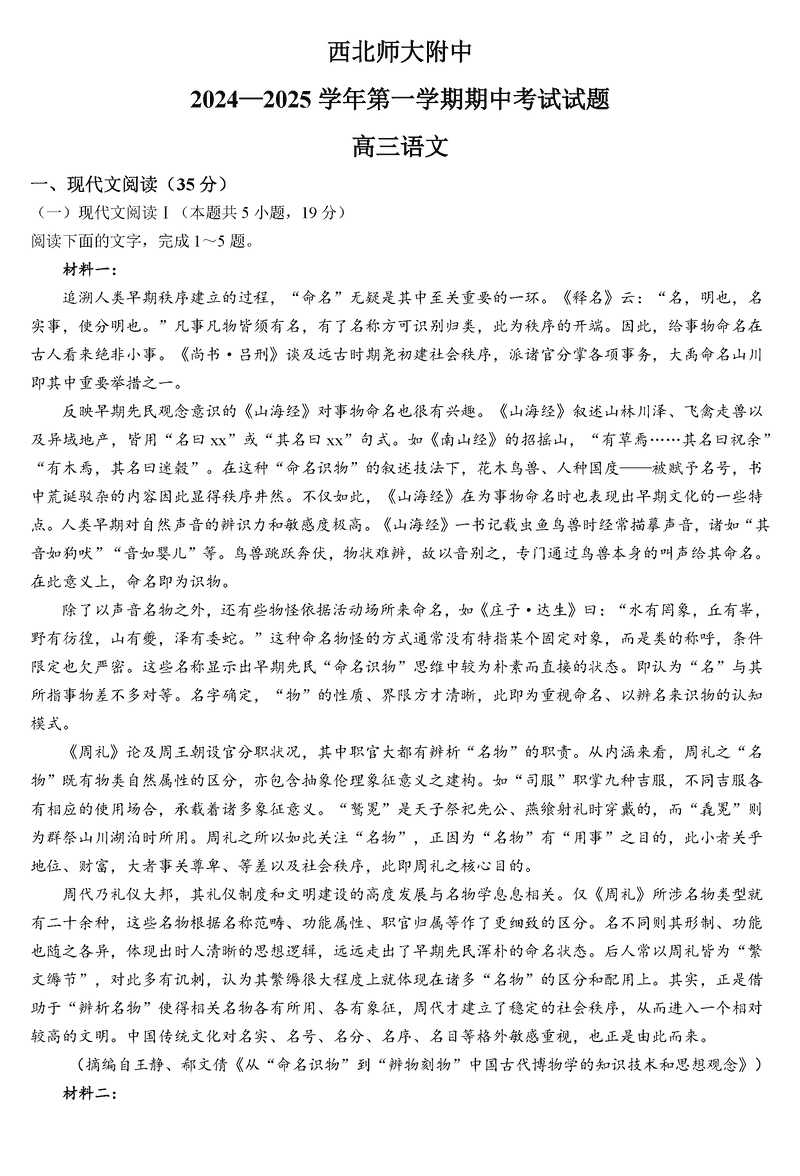 西北师大附中2024-2025学年高三上学期期中语文考试已于近日开考,为方便考生考后及时查看考试情况,查漏补缺、弥补不足,本文整理了试题答案解析相关信息!