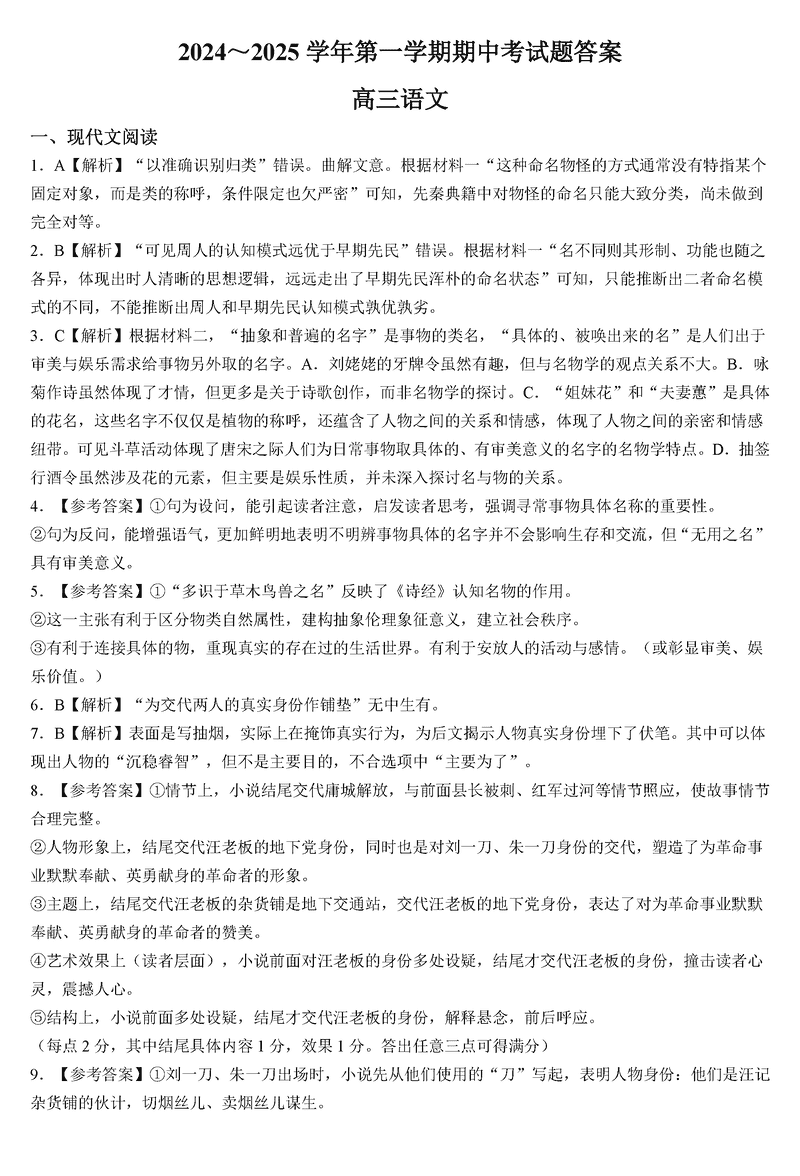 西北师大附中2024-2025学年高三上学期期中语文试题及答案