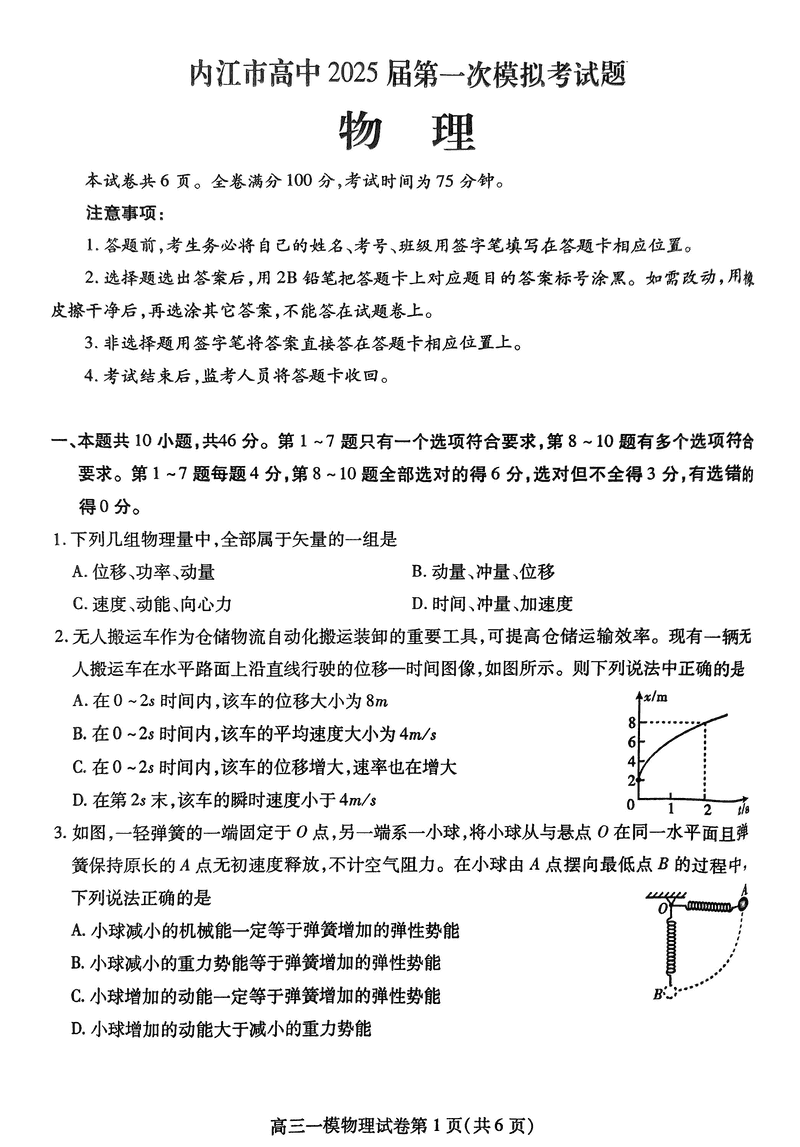 四川内江2025届高三上学期一模物理试题及答案 时间:2024-12-10 22:02 四川 理综试题 四川内江2025届高三上学期一模物理考试已于近日开考,为方便考生考后及时查看考试情况,查漏补缺、弥补不足,本文整理了试题答案解析相关信息! 汇总:四川内江2025届高三上学期一模试题及答案汇总 物理试题及答案解析