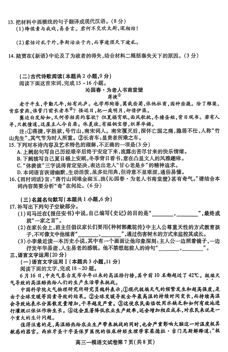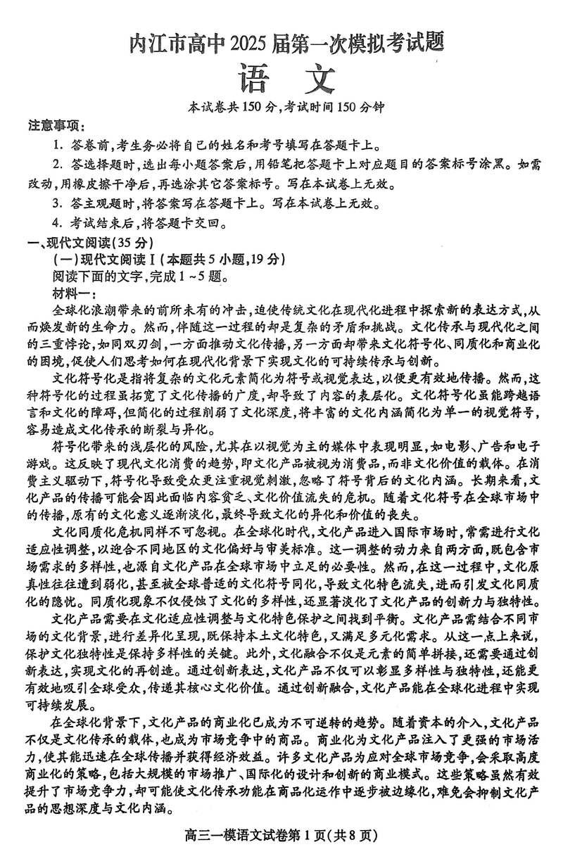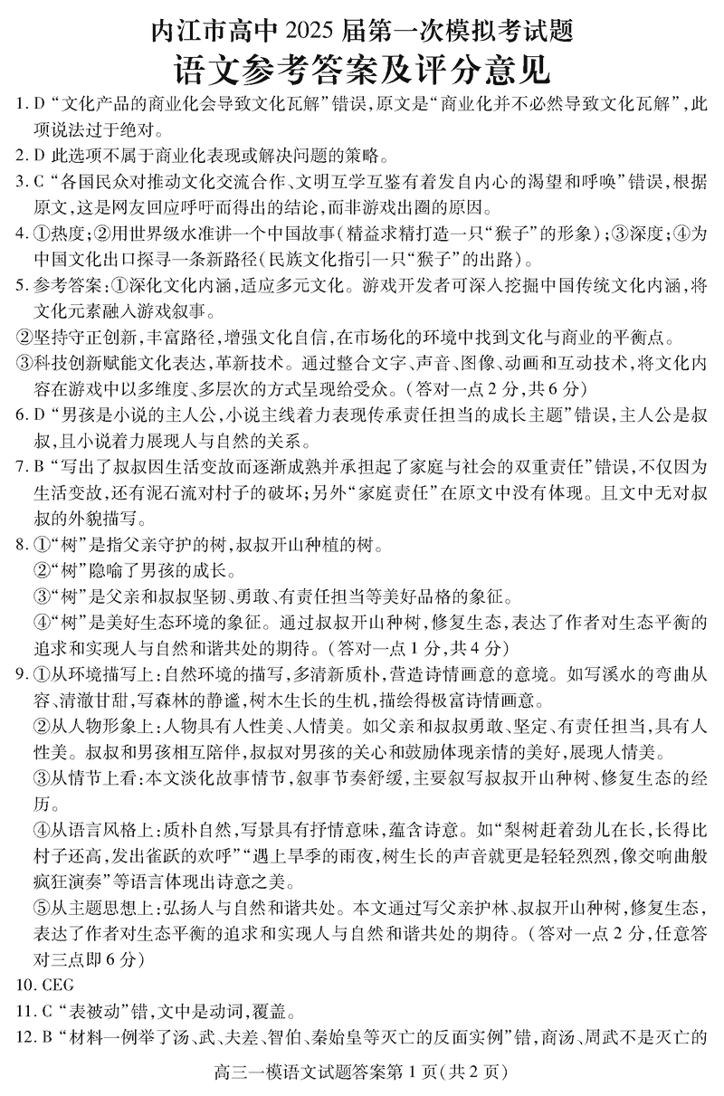 四川内江2025届高三上学期一模语文试题及答案 时间:2024-12-10 22:03 四川 语文试题 四川内江2025届高三上学期一模语文考试已于近日开考,为方便考生考后及时查看考试情况,查漏补缺、弥补不足,本文整理了试题答案解析相关信息! 汇总:四川内江2025届高三上学期一模试题及答案汇总 语文试题及答案解析