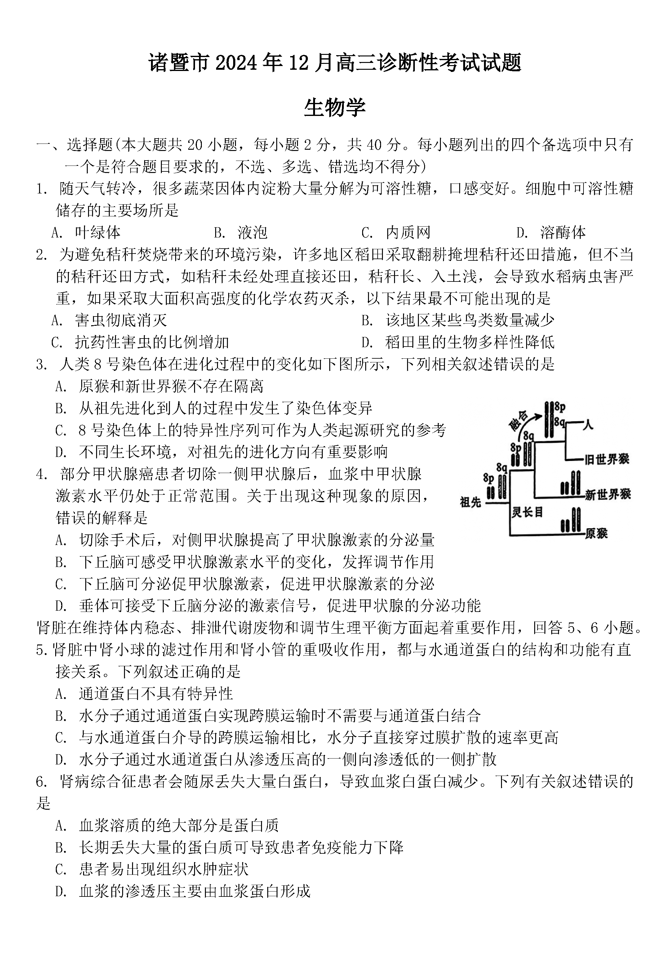 汇总:绍兴市诸暨一模2025届高三上学期12月诊断性考试试题及答案汇总