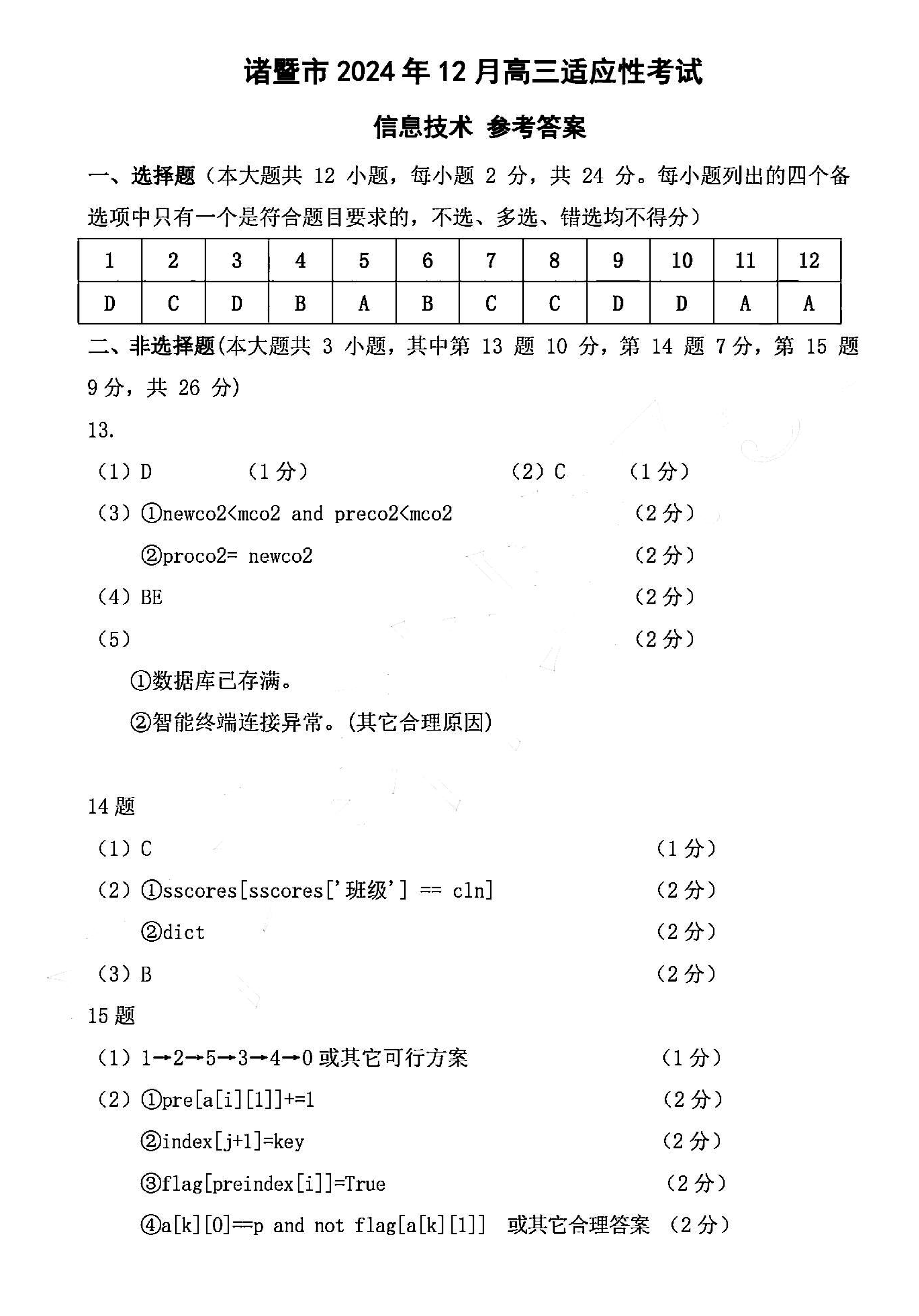 浙江诸暨一模2025届高三上学期12月诊断技术考试已于近日开考,为方便考生考后及时查看考试情况,查漏补缺、弥补不足,本文整理了试题答案解析相关信息!