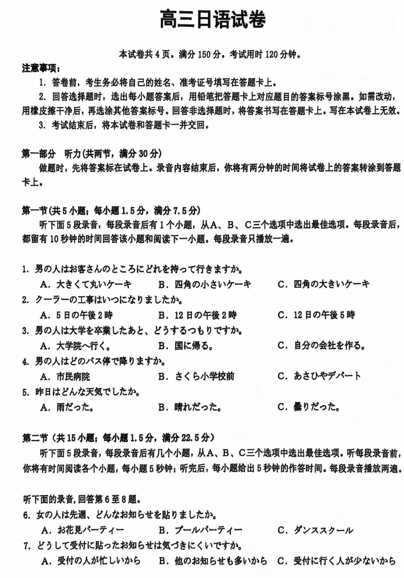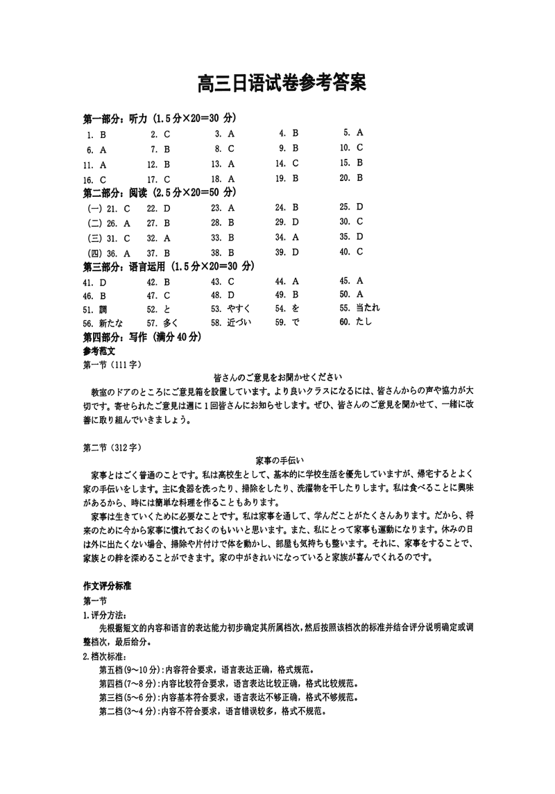 浙江诸暨一模2025届高三上学期12月诊断日语考试已于近日开考,为方便考生考后及时查看考试情况,查漏补缺、弥补不足,本文整理了试题答案解析相关信息!