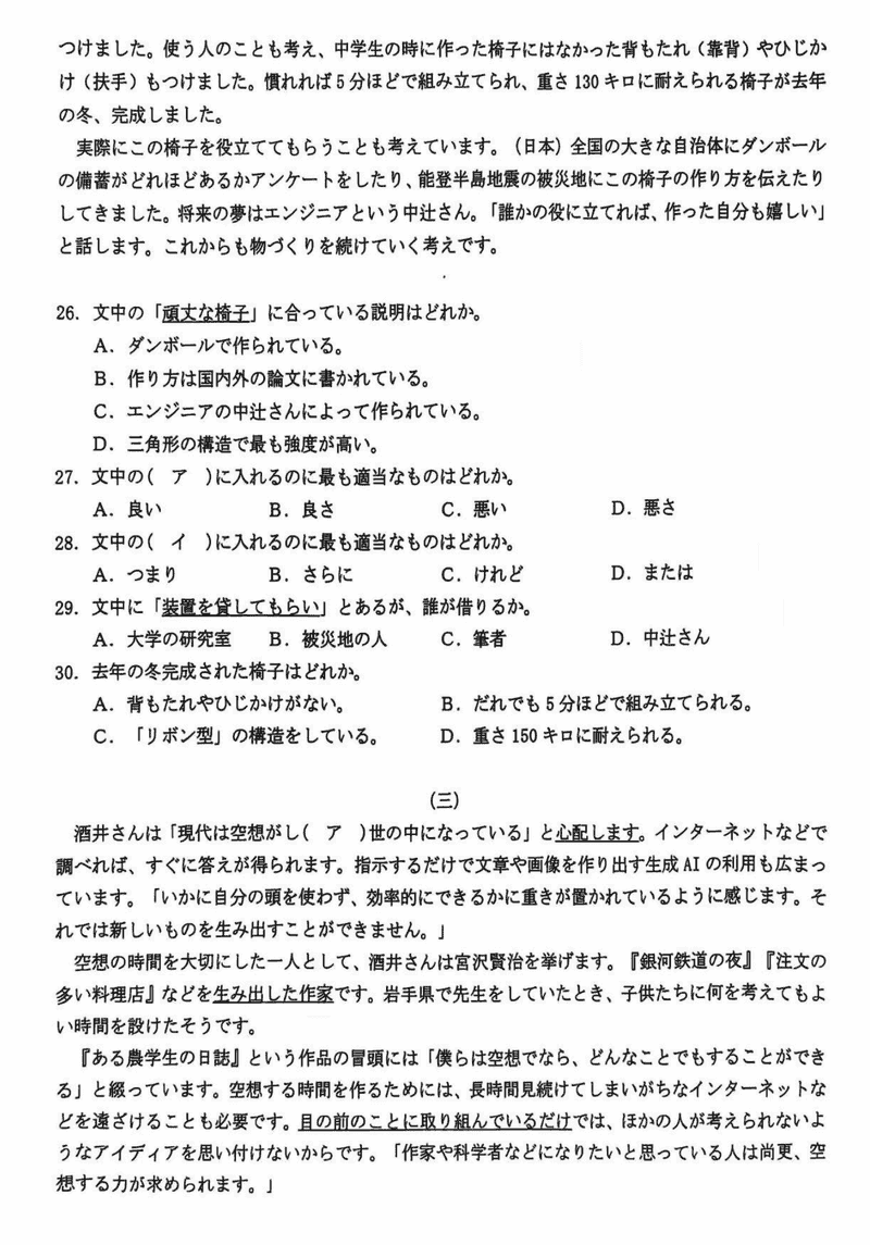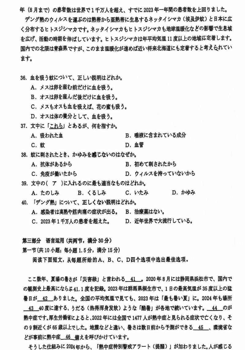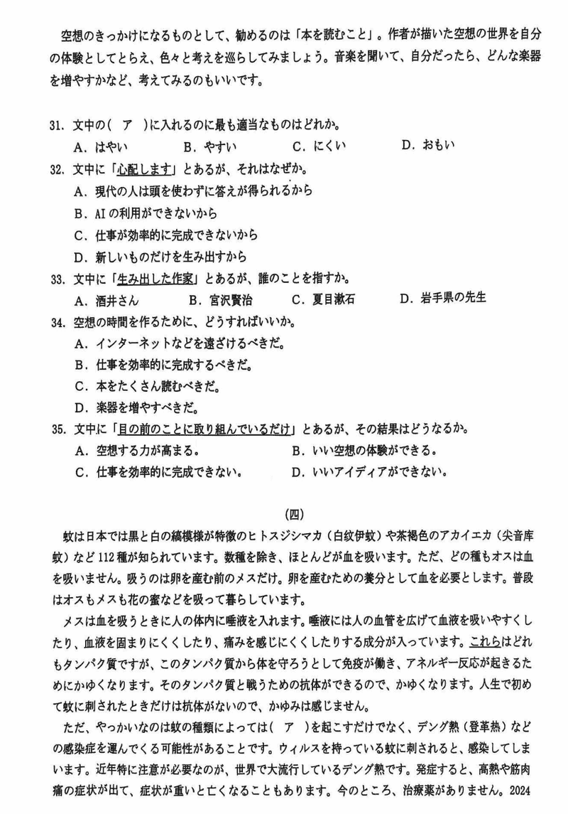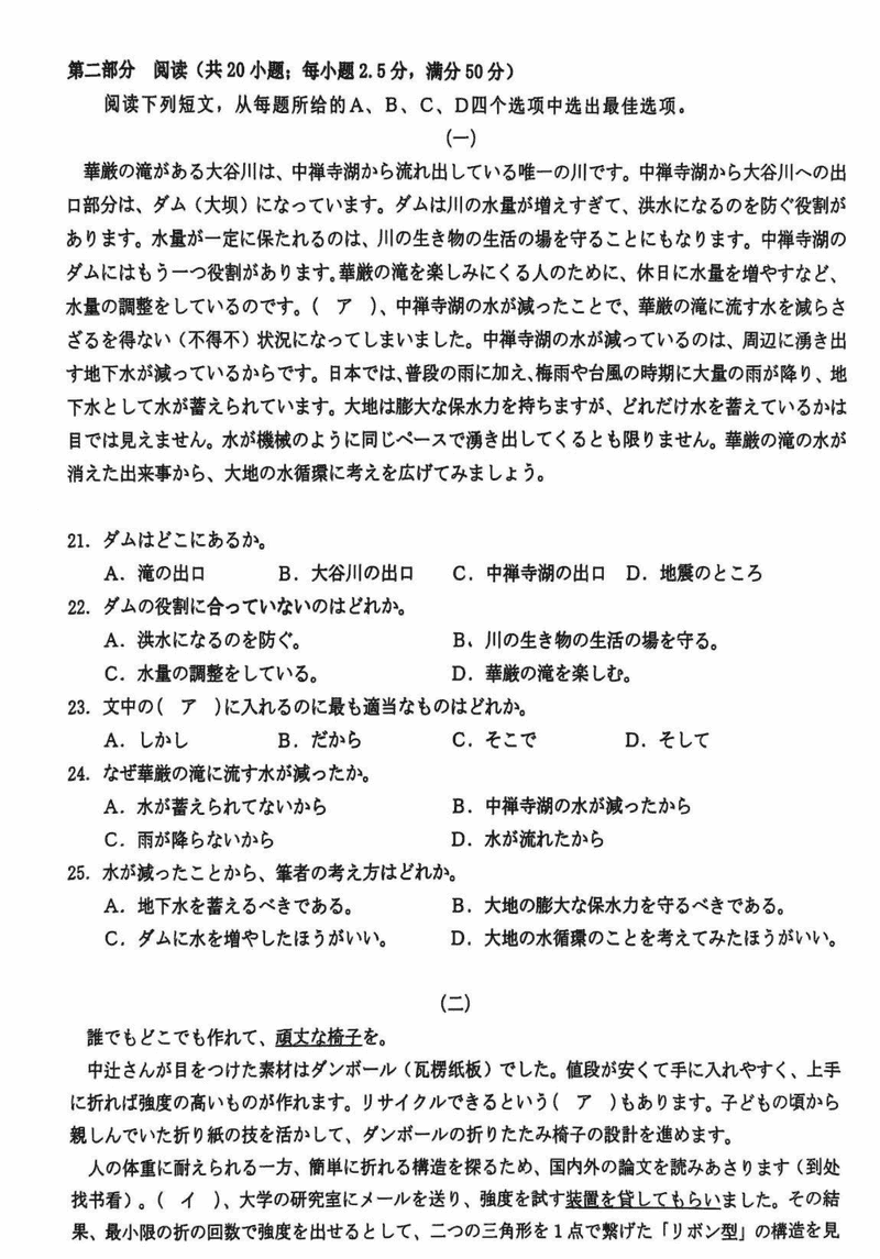 诸暨一模2025届高三上学期12月诊断日语试题及答案