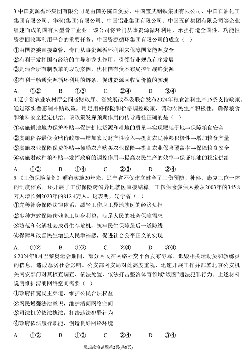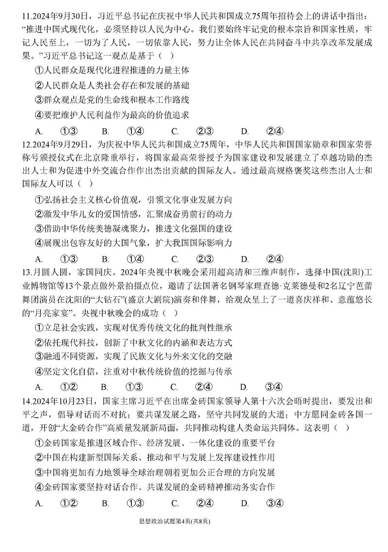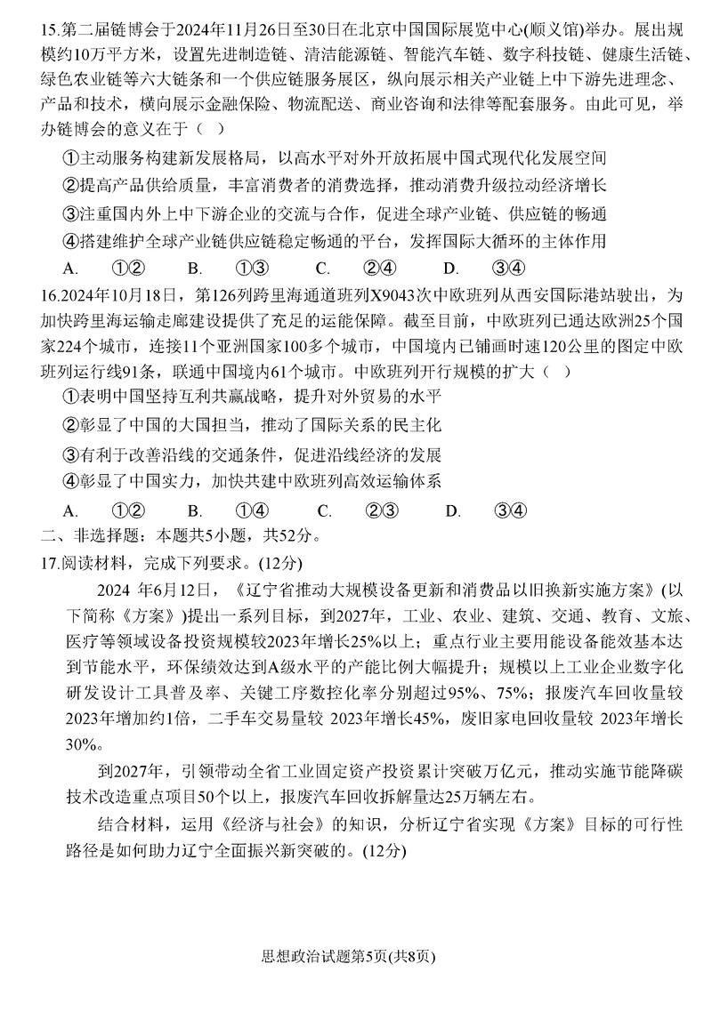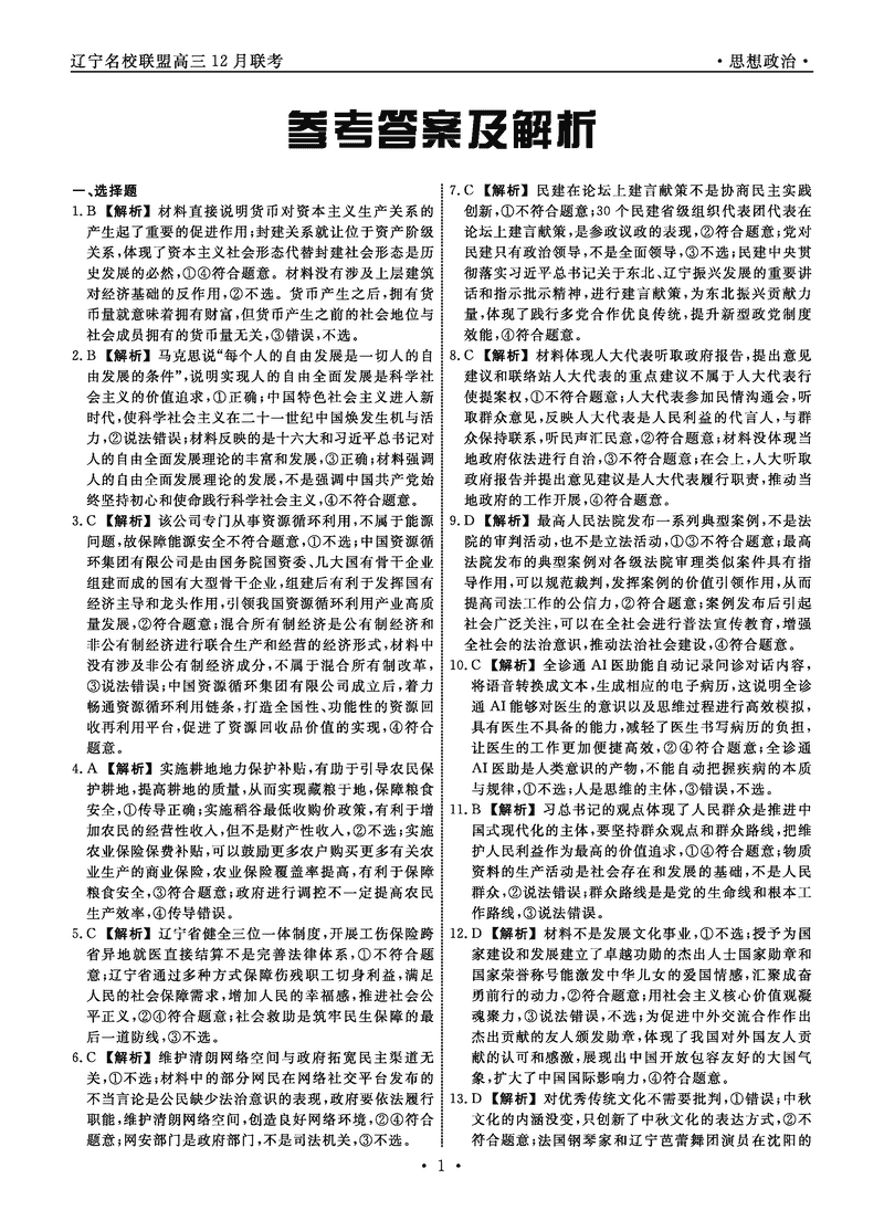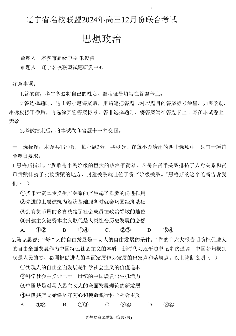 辽宁名校联盟2024年高三12月联考政治试题及答案 时间:2024-12-10 22:25 辽宁 文综试题 辽宁名校联盟2024年高三12月联考政治考试已于近日开考,为方便考生考后及时查看考试情况,查漏补缺、弥补不足,本文整理了试题答案解析相关信息! 汇总:辽宁名校联盟2024年高三12月联考试题及答案汇总 政治试题及答案解析