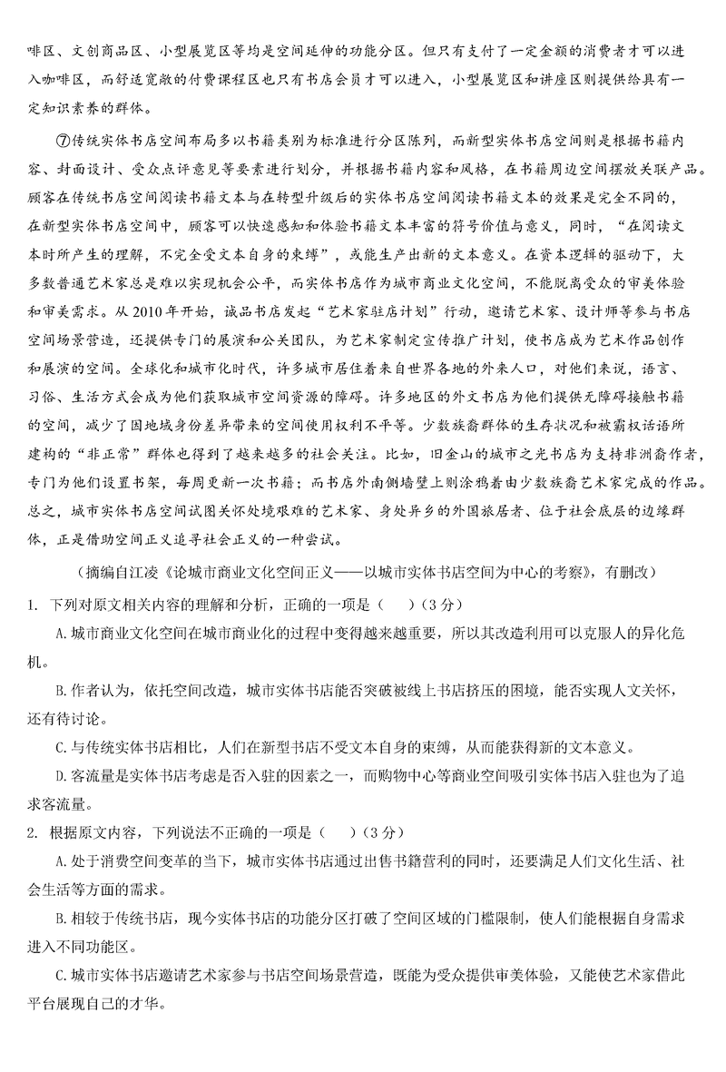深圳高级中学2024-2025学年高三上第二次诊断语文试题及答案