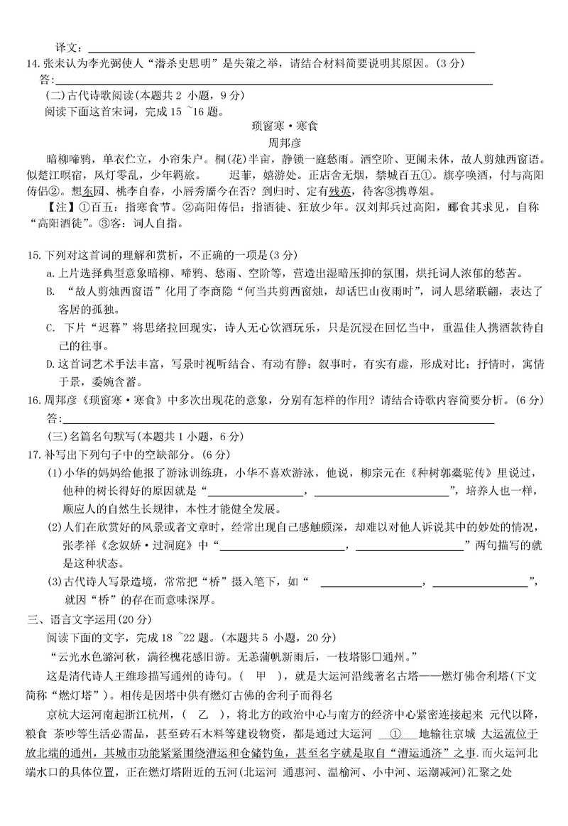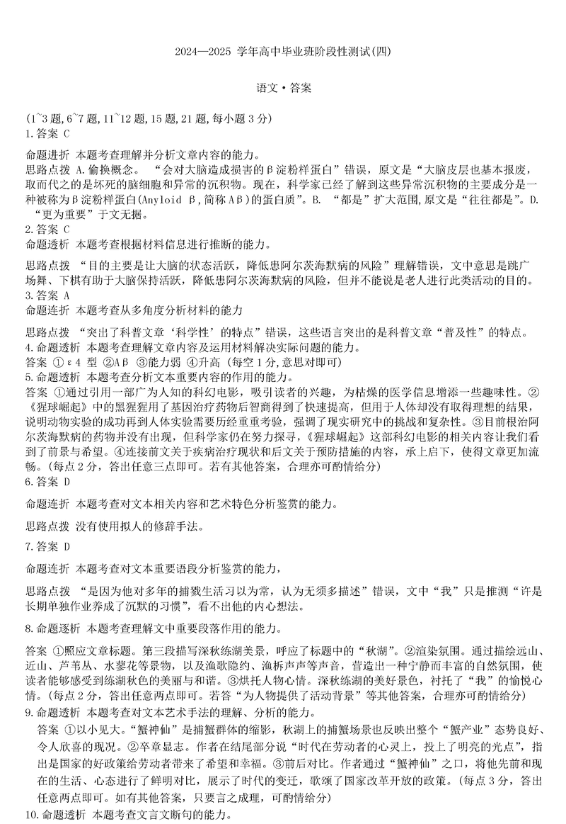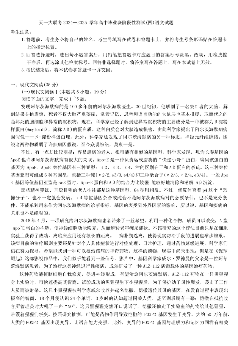 河南天一大联考2024-2025学年高三阶段性测试(四)语文试题及答案