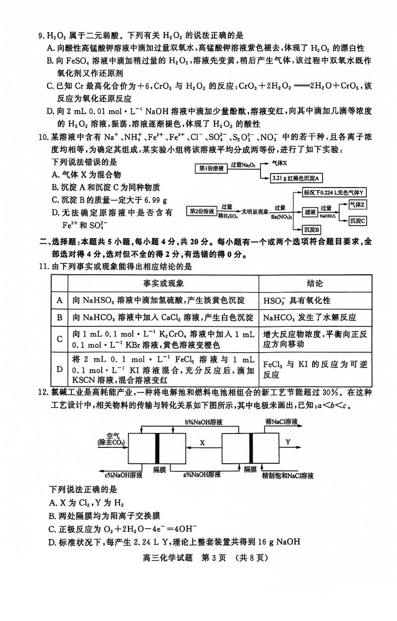 山东名校考试联盟2024年12月高三阶段测化学试题及答案