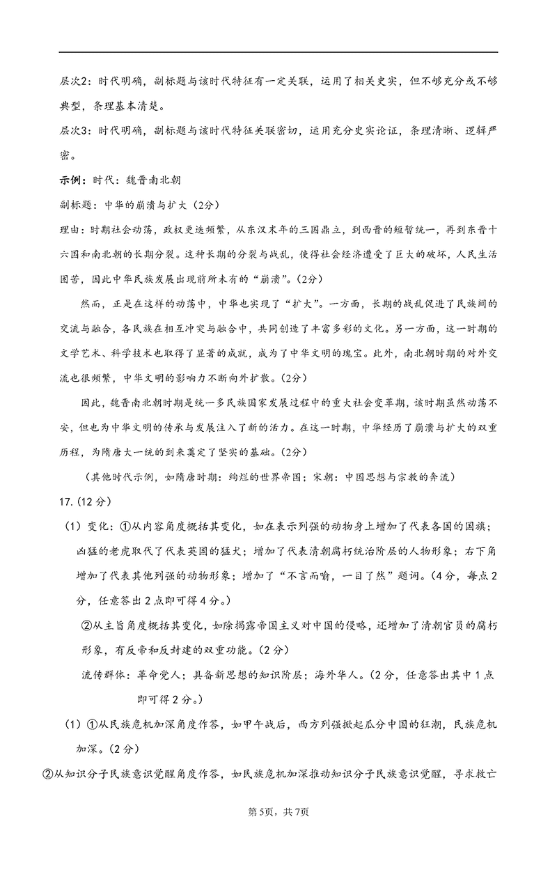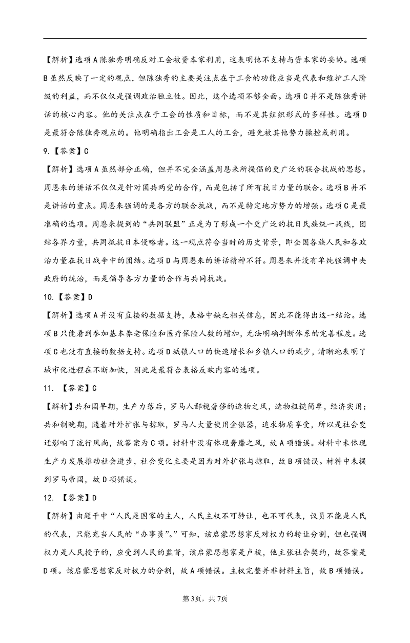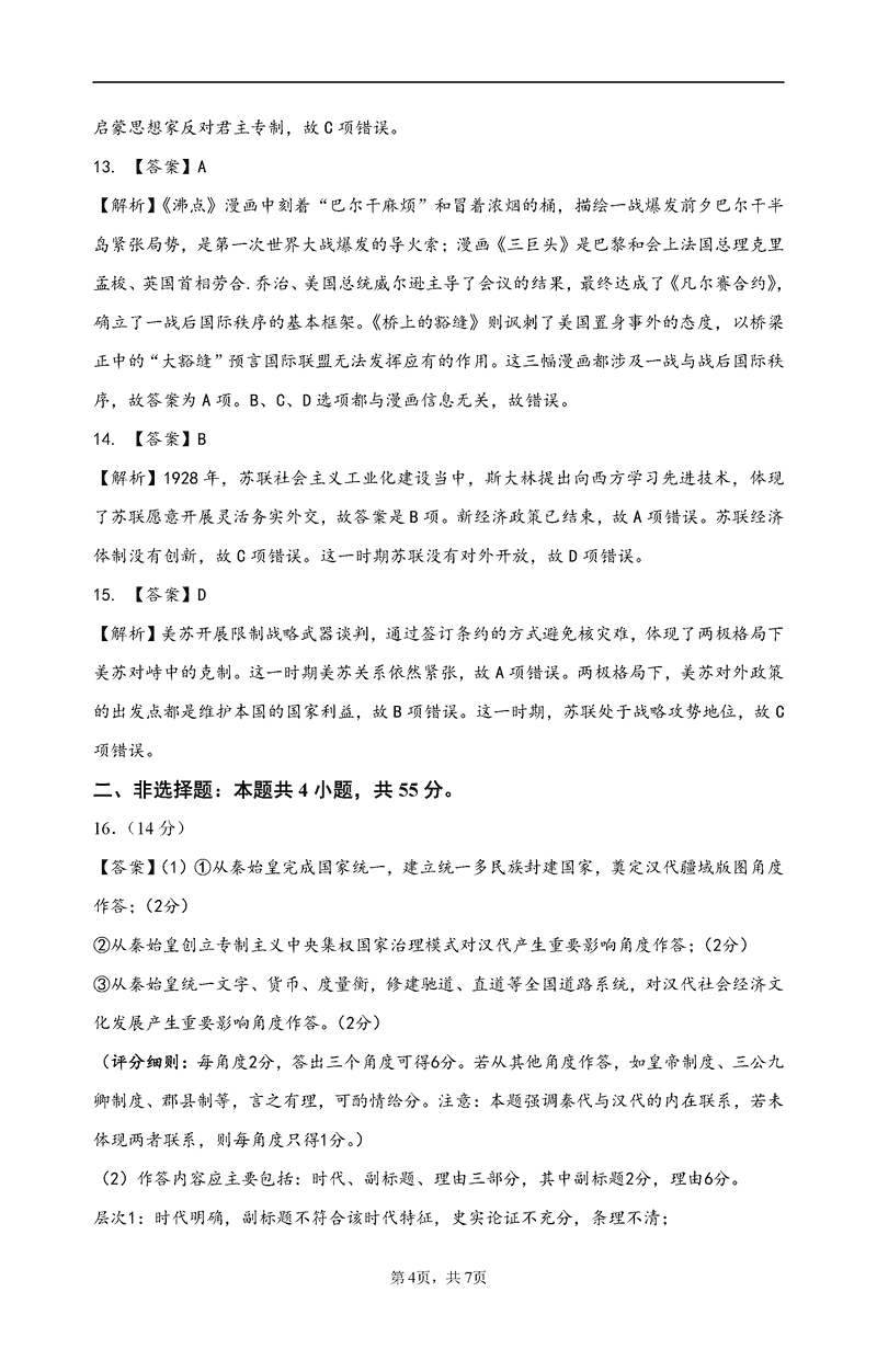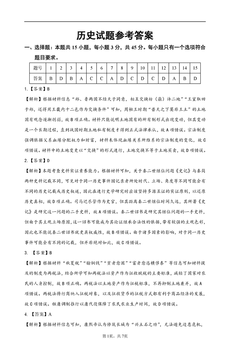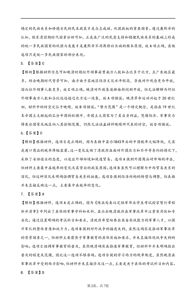 历史试题及答案解析