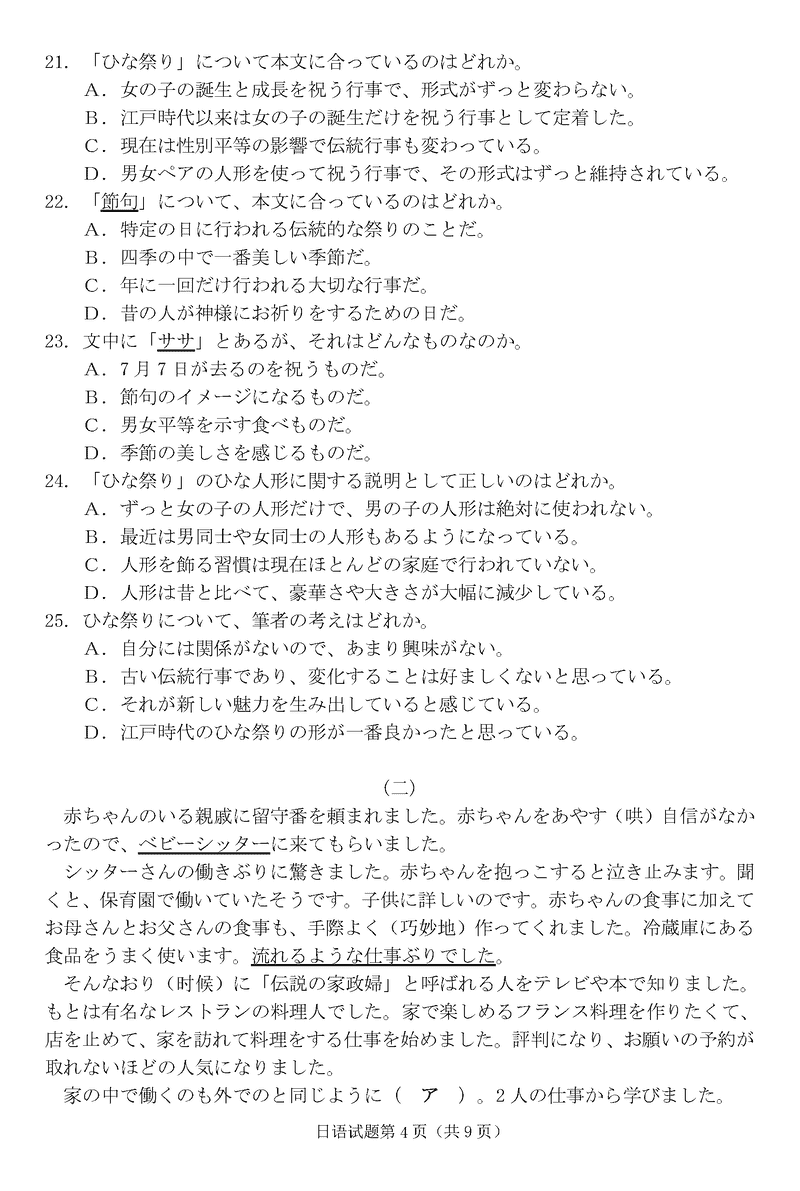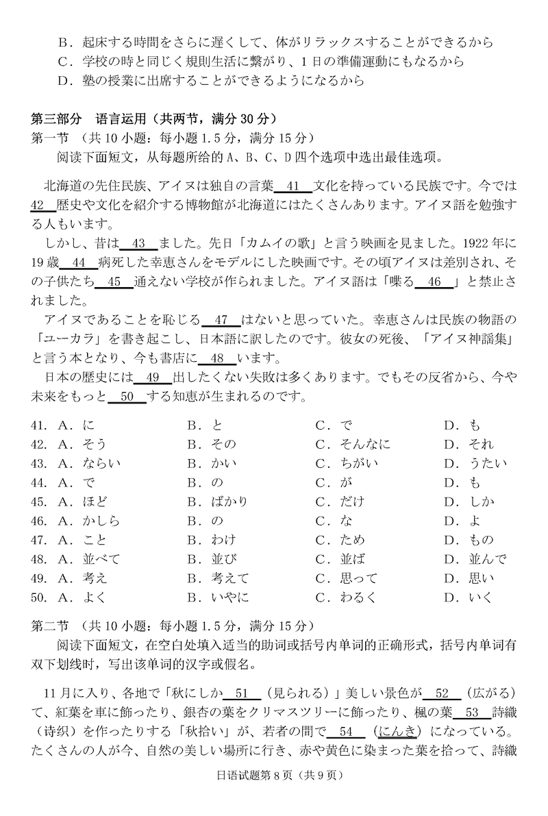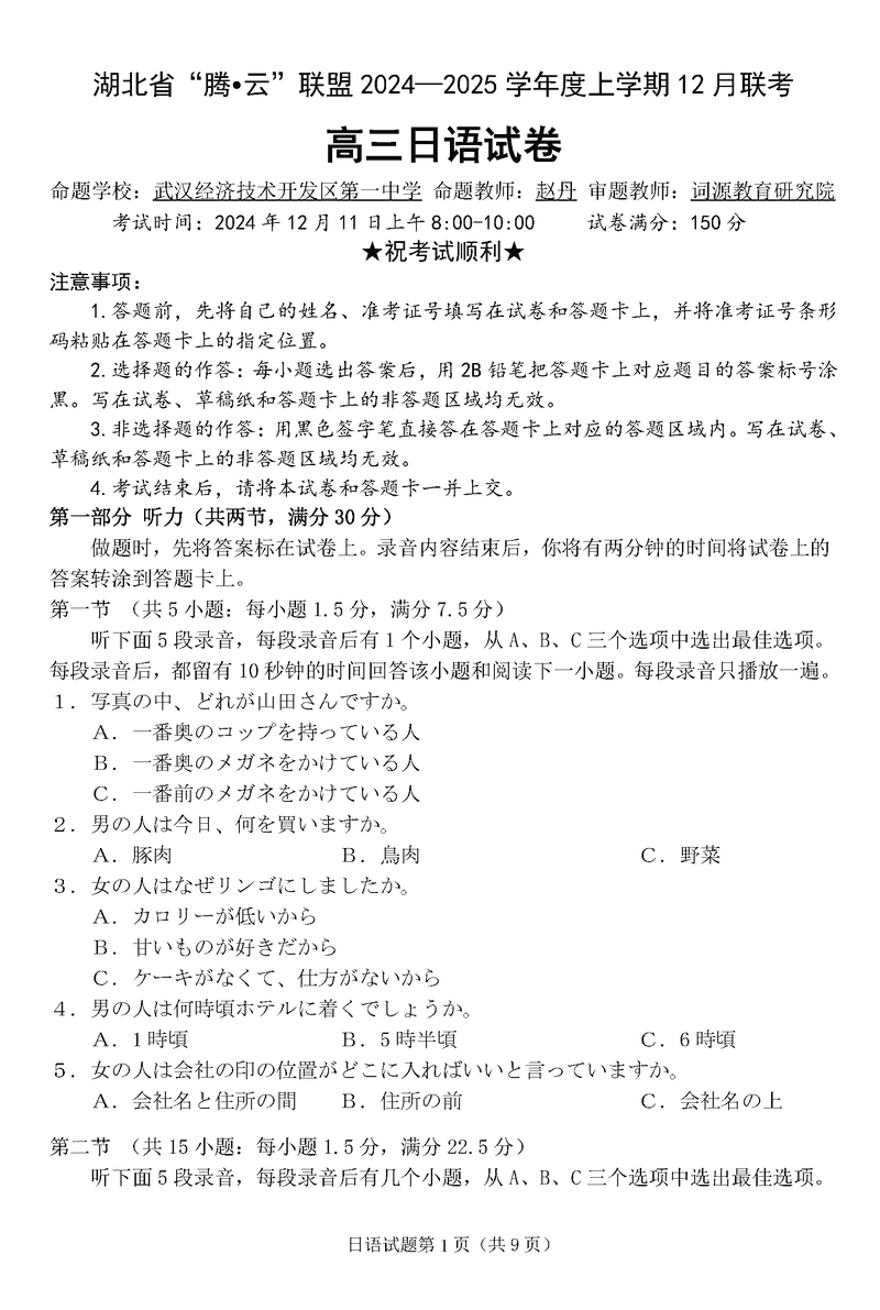 湖北省腾云联盟2025届高三12月联考日语试题及答案 时间:2024-12-12 12:32 湖北 英语试题 湖北省腾云联盟2025届高三12月联考日语考试已于近日开考,为方便考生考后及时查看考试情况,查漏补缺、弥补不足,本文整理了试题答案解析相关信息! 汇总:湖北省腾云联盟2025届高三12月联考试题及答案汇总 日语试题及答案解析