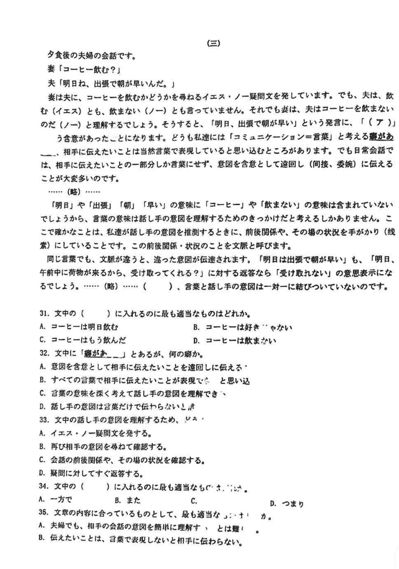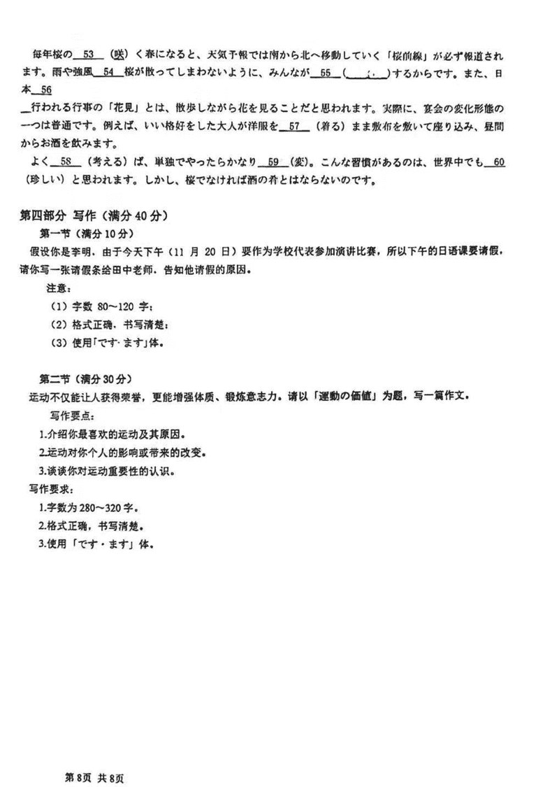 达州一诊2025届高三第一次诊断日语试题及答案
