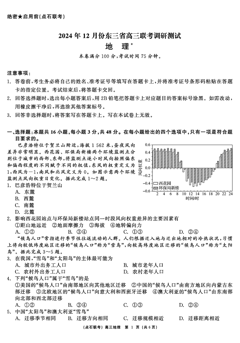 东北三省2024年12月高三点石联考地理试题及答案 时间:2024-12-13 11:13 黑龙江 文综试题 东北三省2024年12月高三点石联考地理考试已于近日开考,为方便考生考后及时查看考试情况,查漏补缺、弥补不足,本文整理了试题答案解析相关信息! 汇总:东北三省2024年12月高三点石联考调研测试试题及答案汇总 地理试题及答案解析