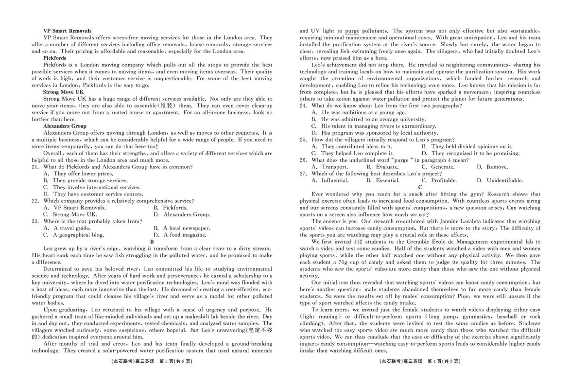 东北三省2024年12月高三点石联考英语试题及答案 时间:2024-12-13 11:16 黑龙江 英语试题 东北三省2024年12月高三点石联考英语考试已于近日开考,为方便考生考后及时查看考试情况,查漏补缺、弥补不足,本文整理了试题答案解析相关信息! 汇总:东北三省2024年12月高三点石联考调研测试试题及答案汇总 英语试题及答案解析