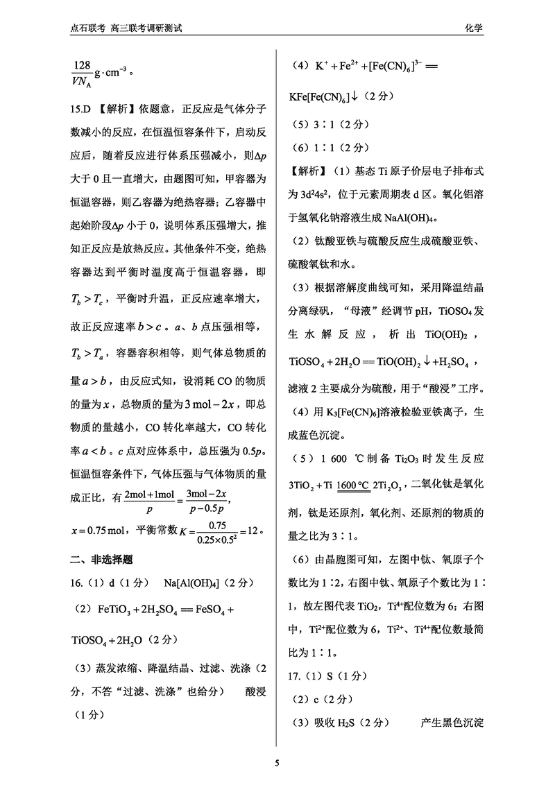 东北三省2024年12月高三点石联考化学试题及答案 时间:2024-12-13 11:16 黑龙江 理综试题 东北三省2024年12月高三点石联考化学考试已于近日开考,为方便考生考后及时查看考试情况,查漏补缺、弥补不足,本文整理了试题答案解析相关信息! 汇总:东北三省2024年12月高三点石联考调研测试试题及答案汇总 化学试题及答案解析