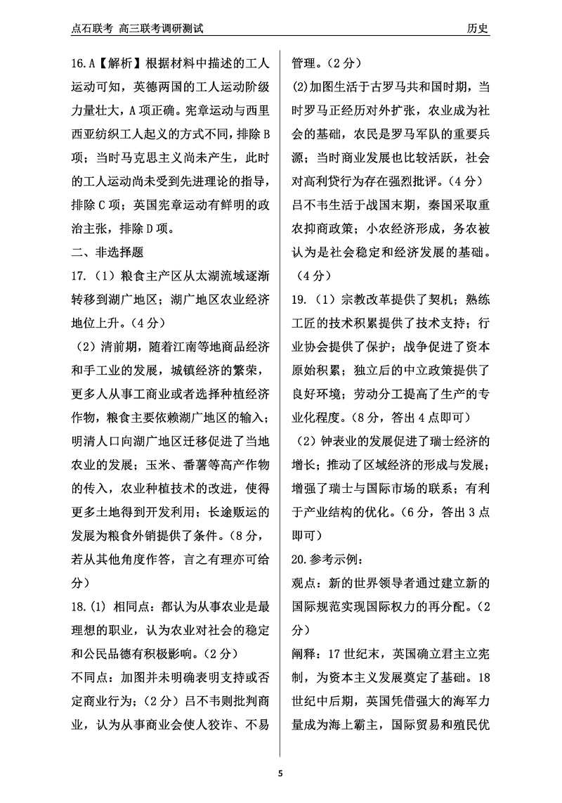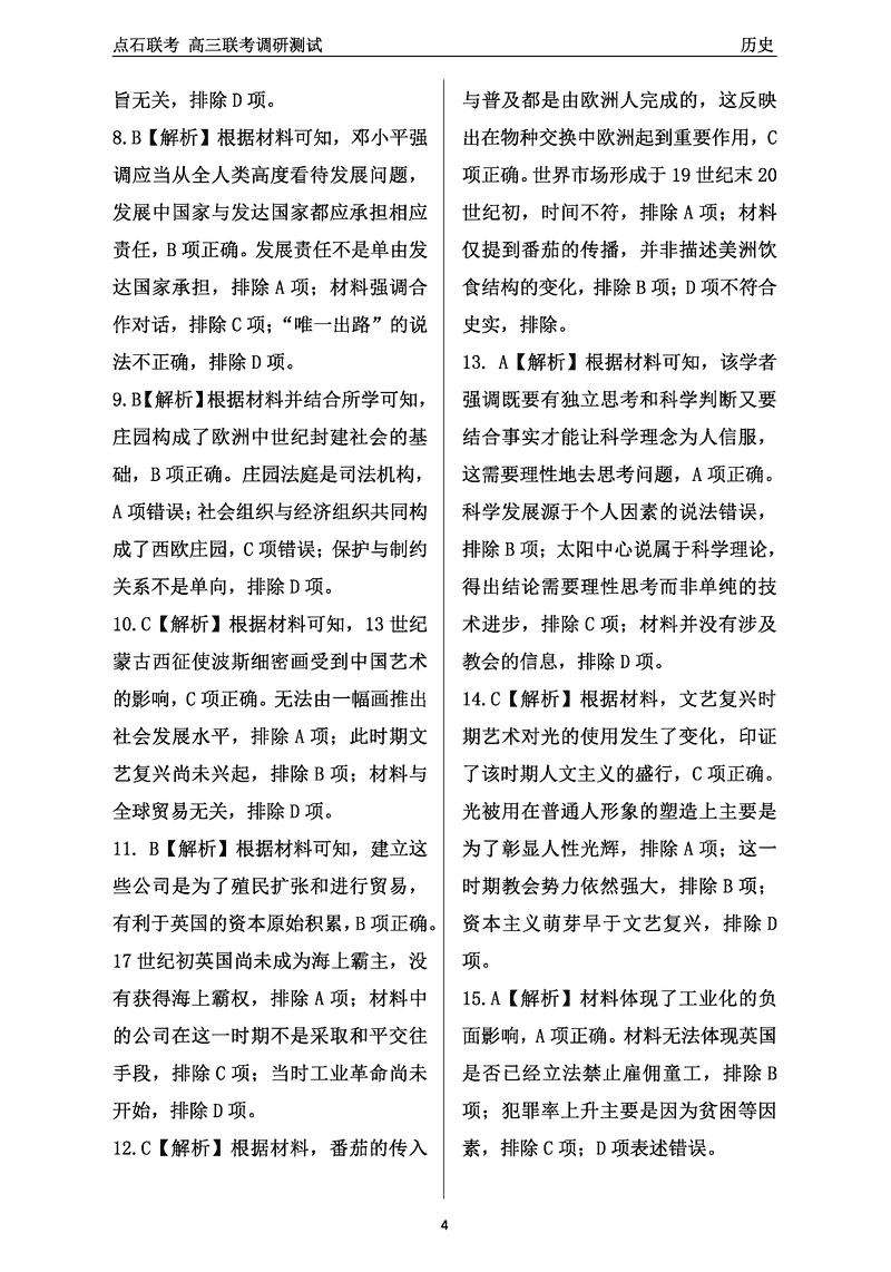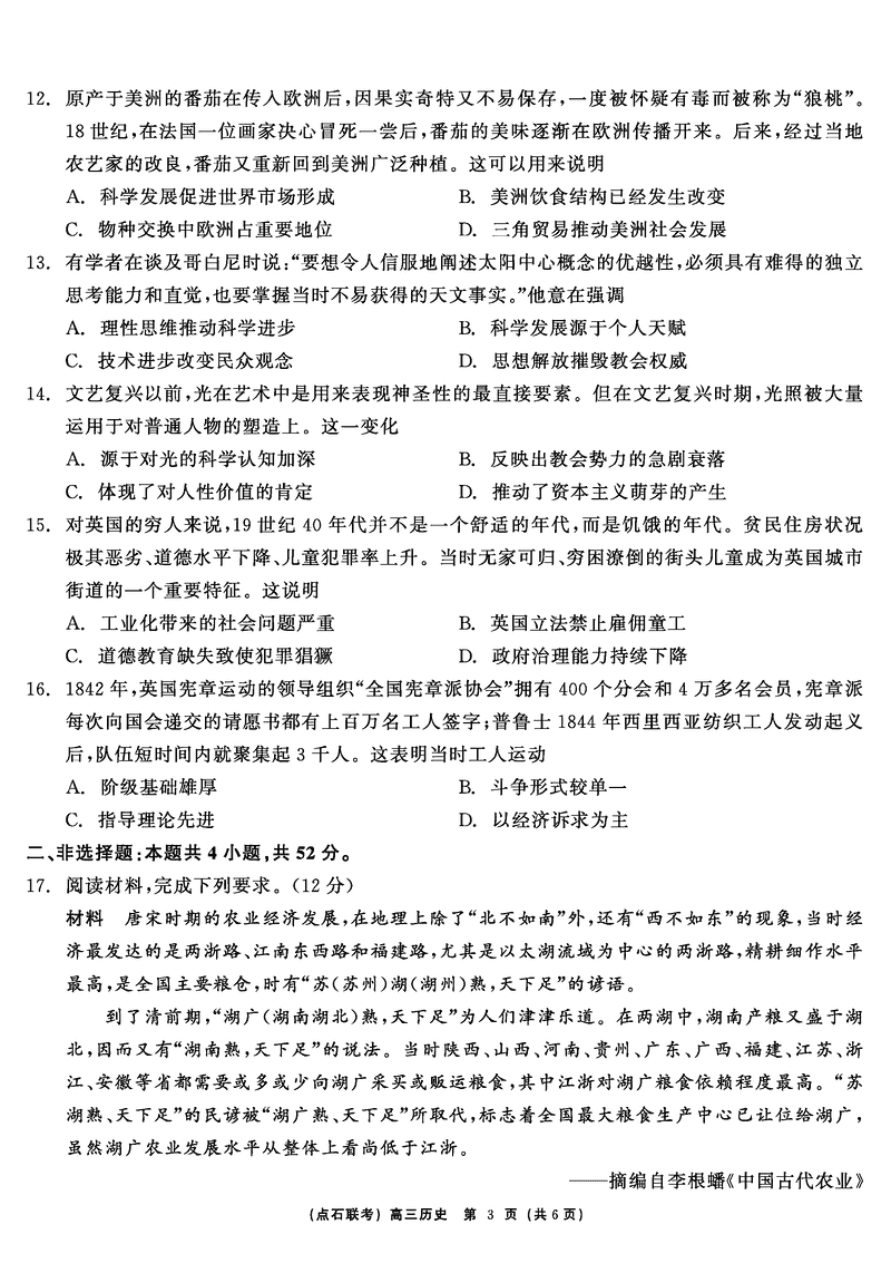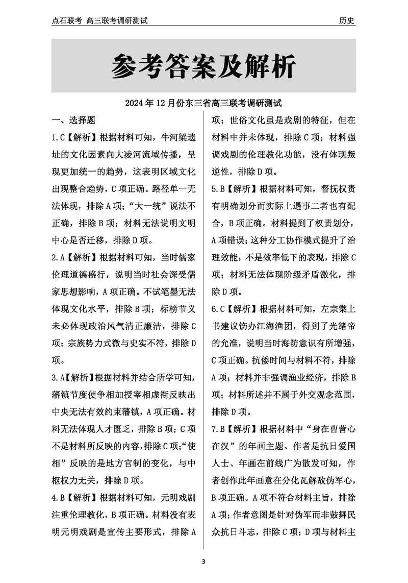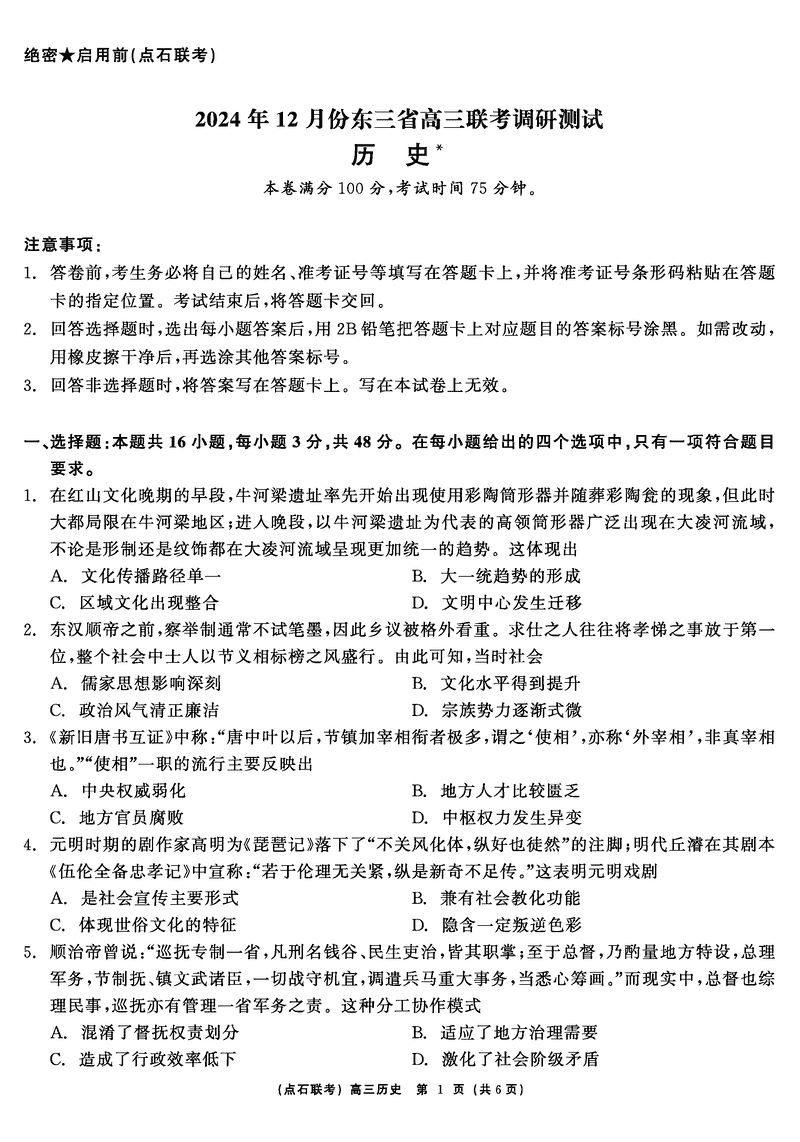 东北三省2024年12月高三点石联考历史试题及答案 时间:2024-12-13 11:17 黑龙江 文综试题 东北三省2024年12月高三点石联考历史考试已于近日开考,为方便考生考后及时查看考试情况,查漏补缺、弥补不足,本文整理了试题答案解析相关信息! 汇总:东北三省2024年12月高三点石联考调研测试试题及答案汇总 历史试题及答案解析