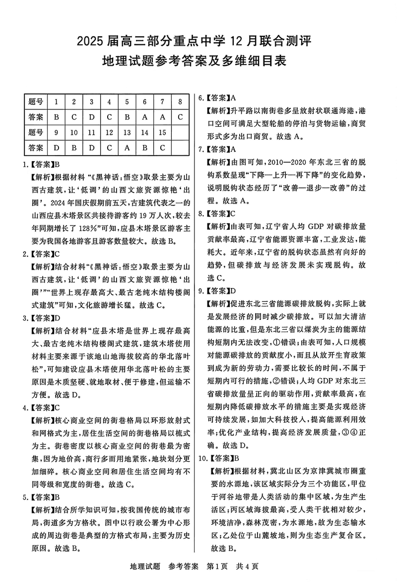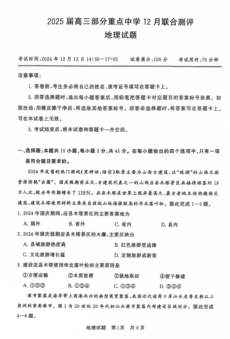 2025届全国T8八省八校高三12月联合测评地理试题及答案