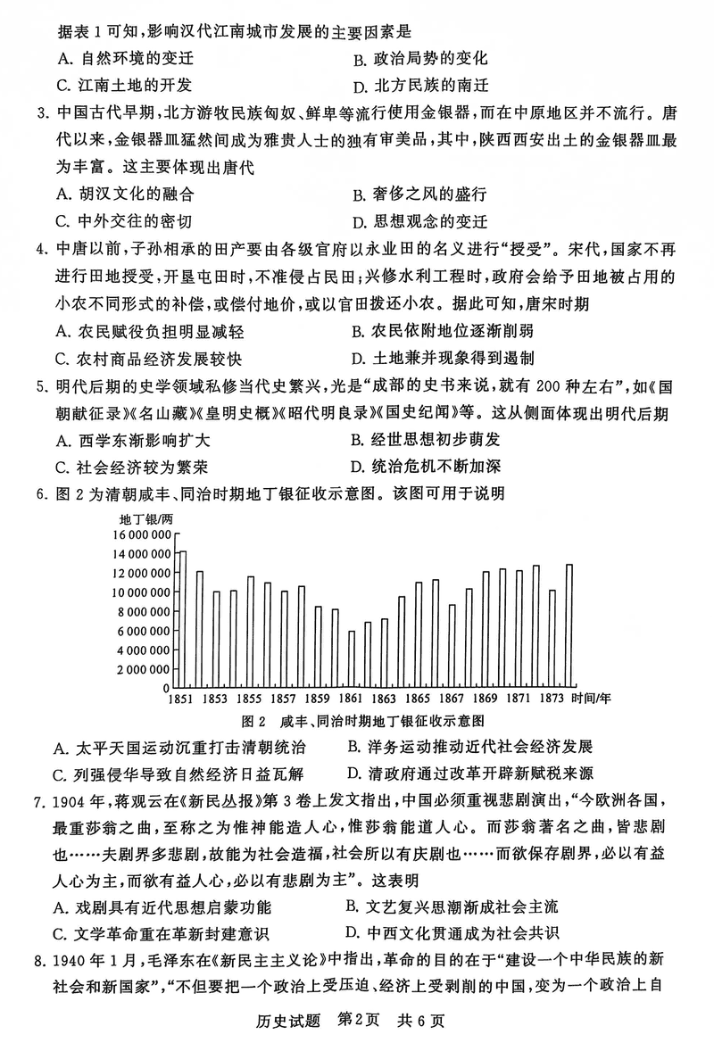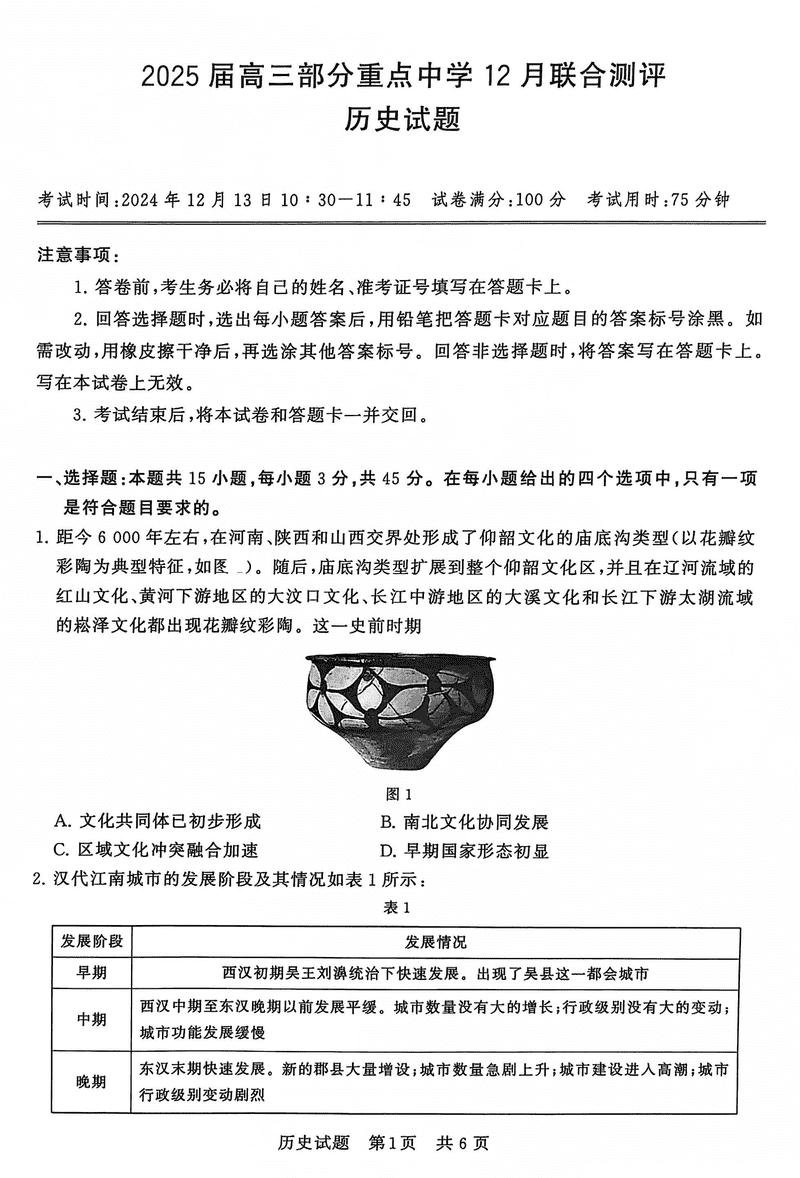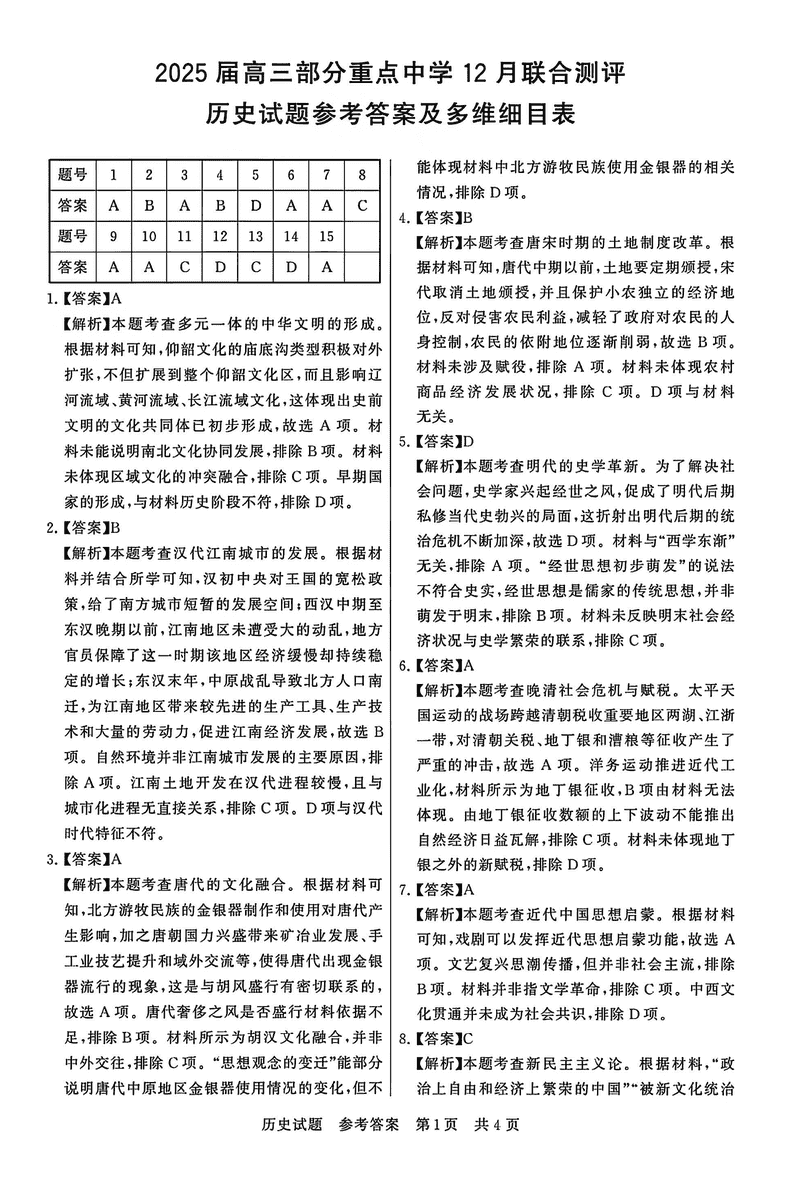 2025届全国T8八省八校高三12月联合测评历史试题及答案