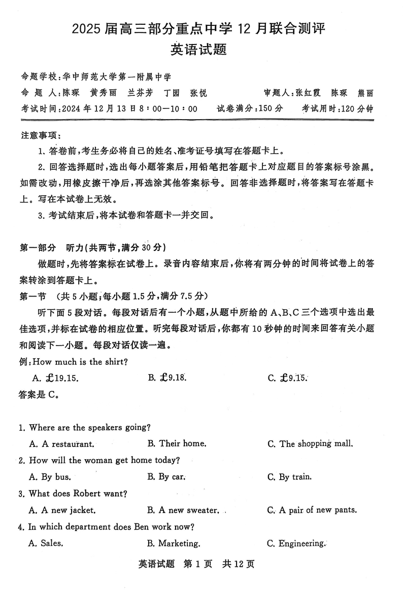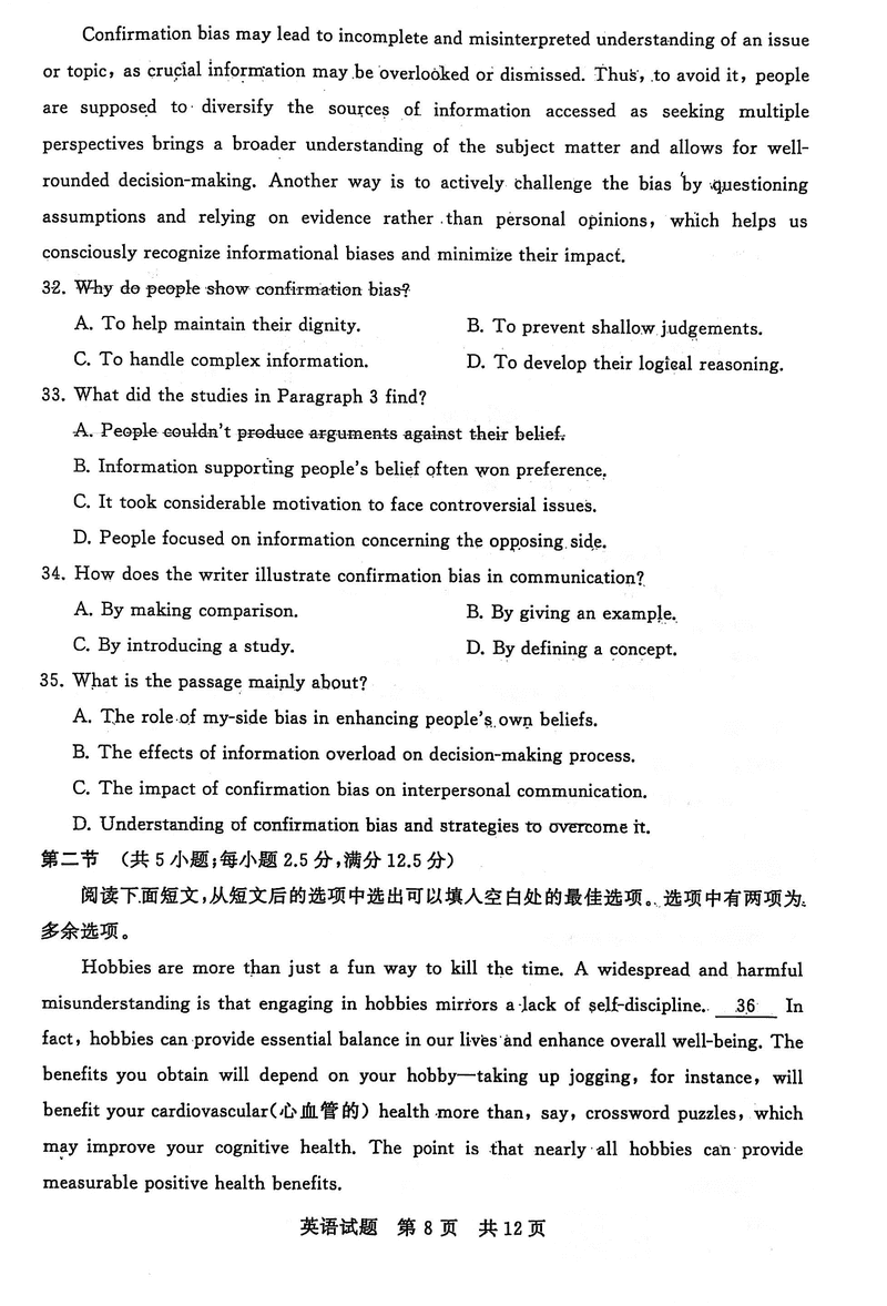 2025届全国T8八省八校高三12月联合测评英语试题及答案