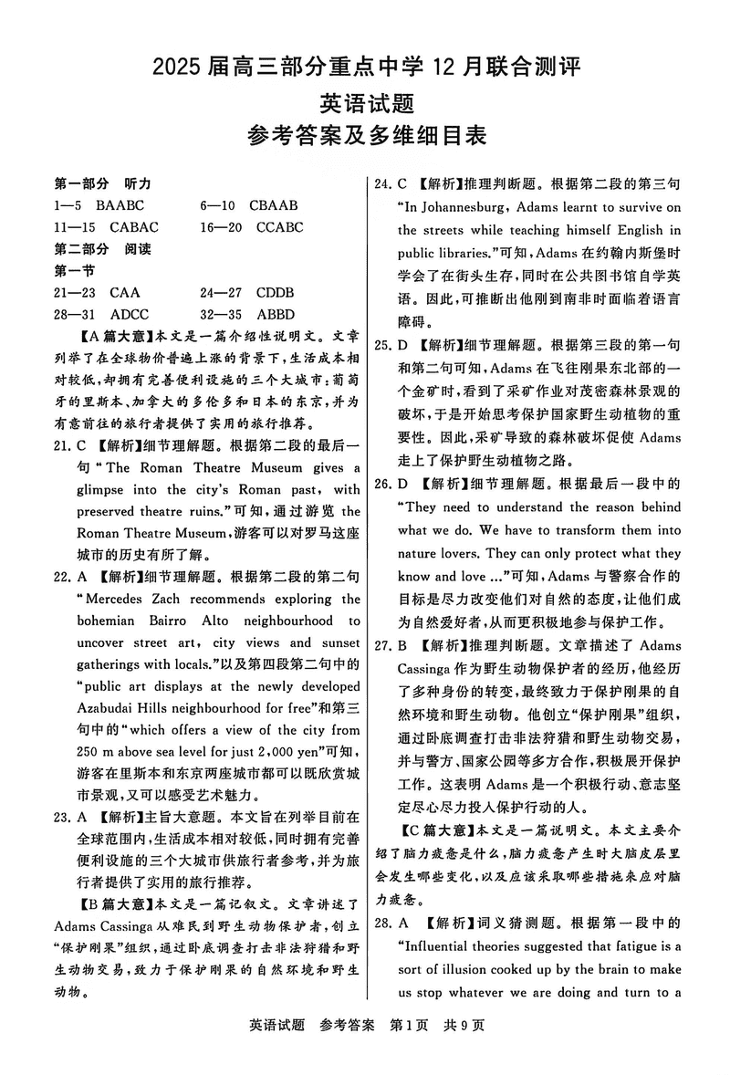 2025届全国T8八省八校高三12月联合测评英语考试已于近日开考,为方便考生考后及时查看考试情况,查漏补缺、弥补不足,本文整理了试题答案解析相关信息!