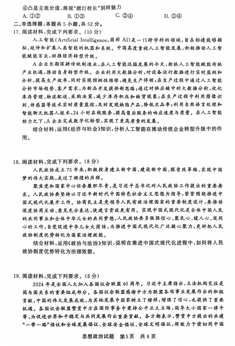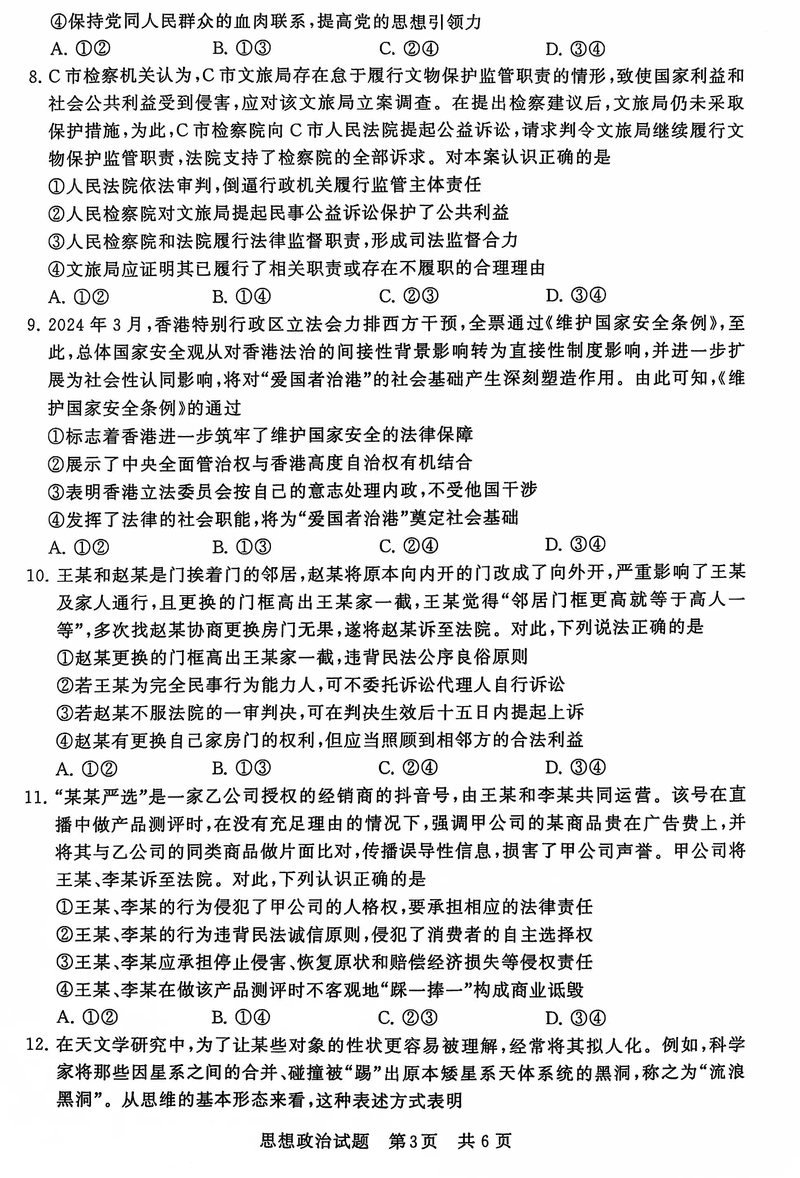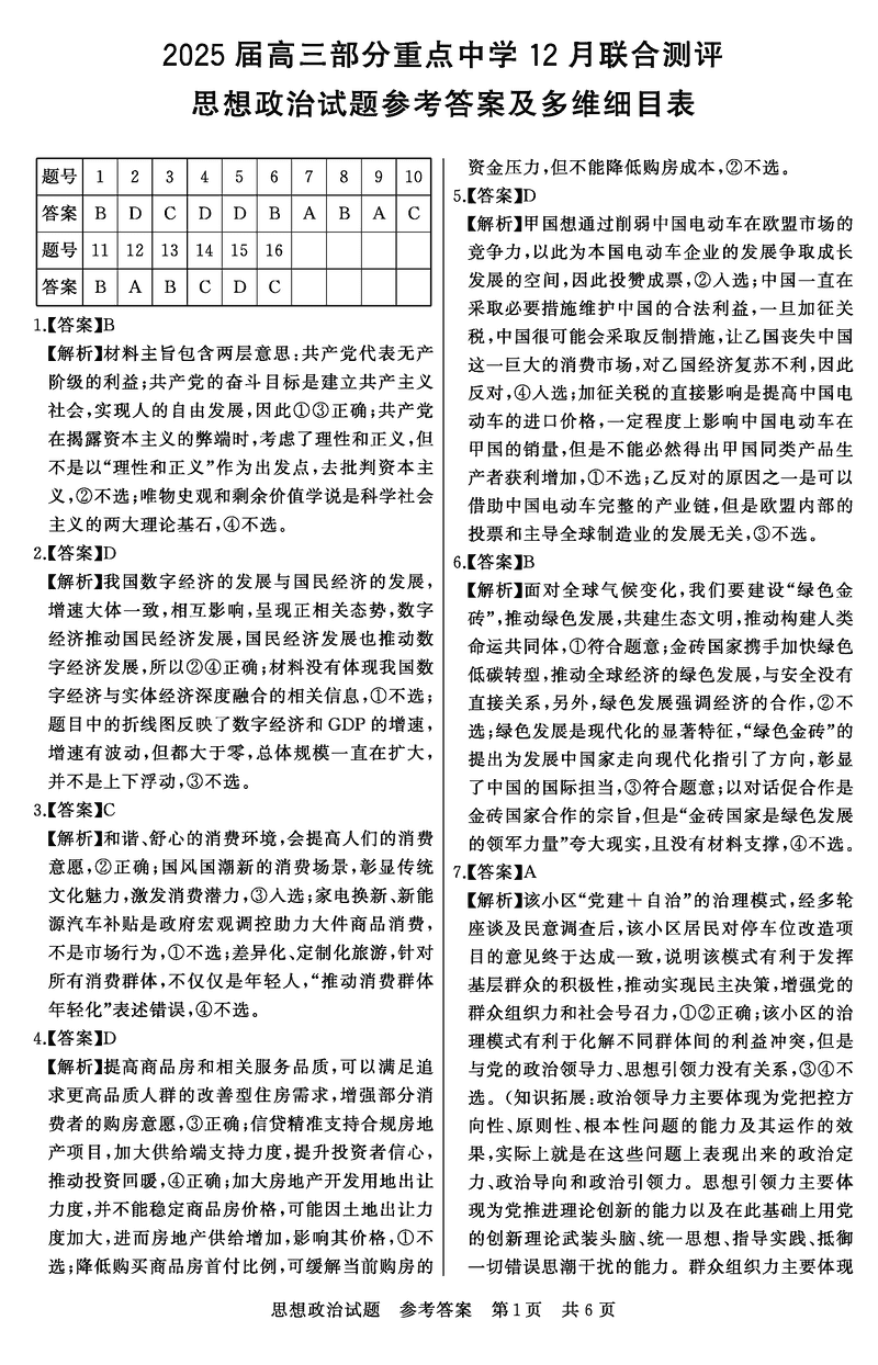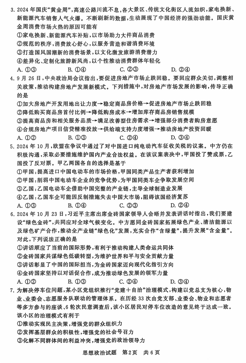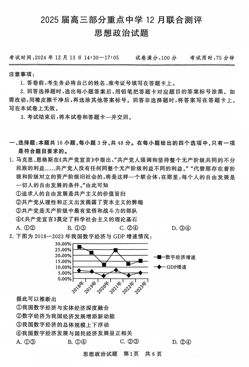 2025届全国T8八省八校高三12月联合测评政治试题及答案