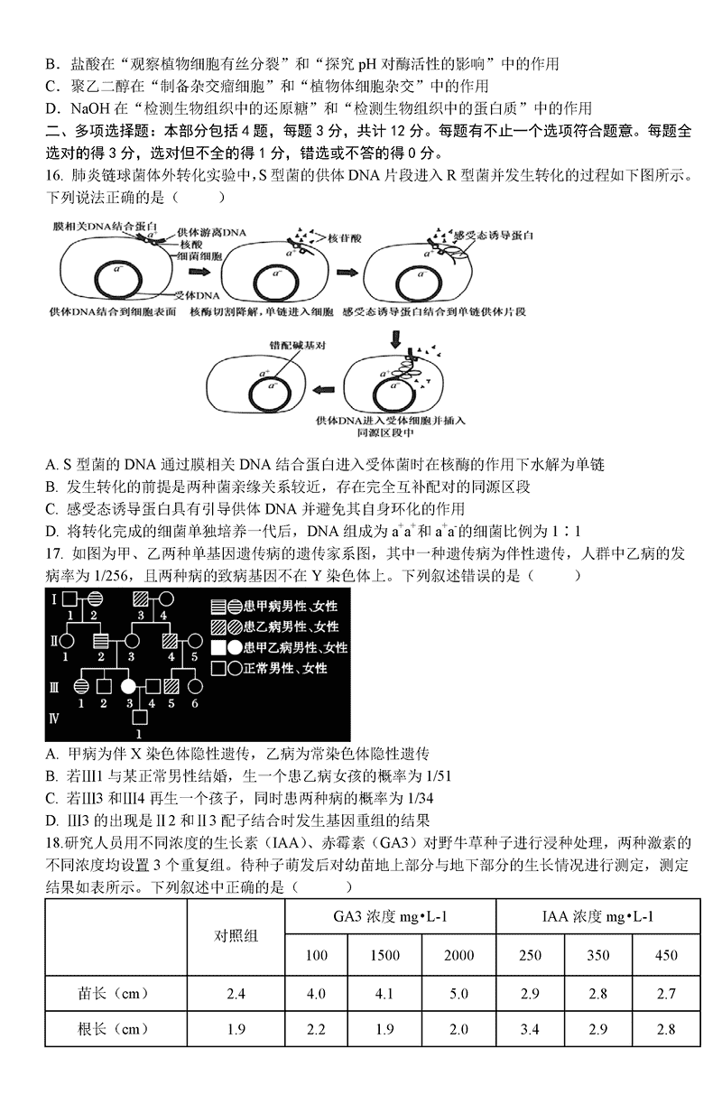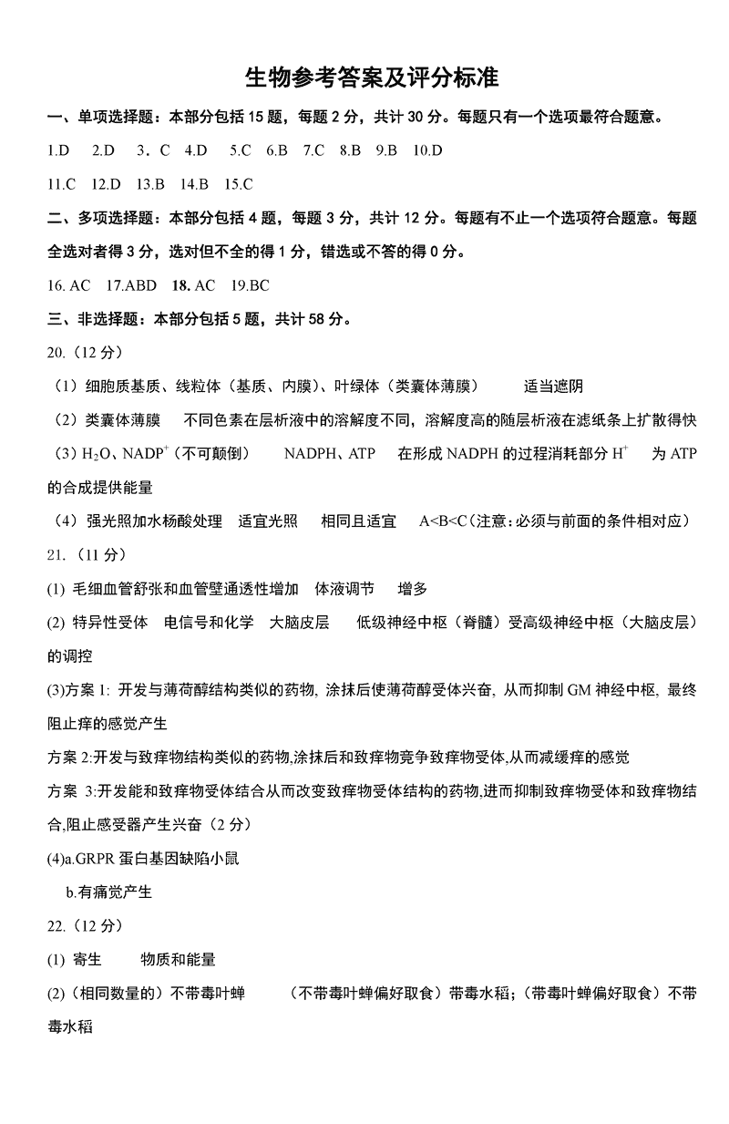 江苏 理综试题