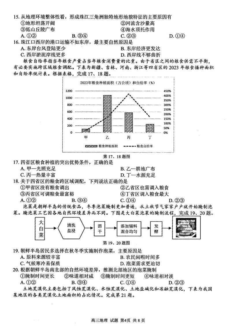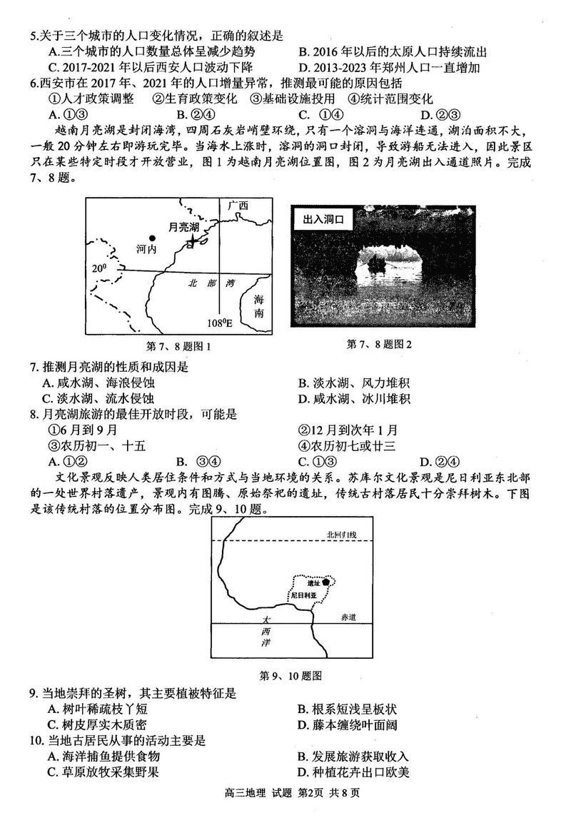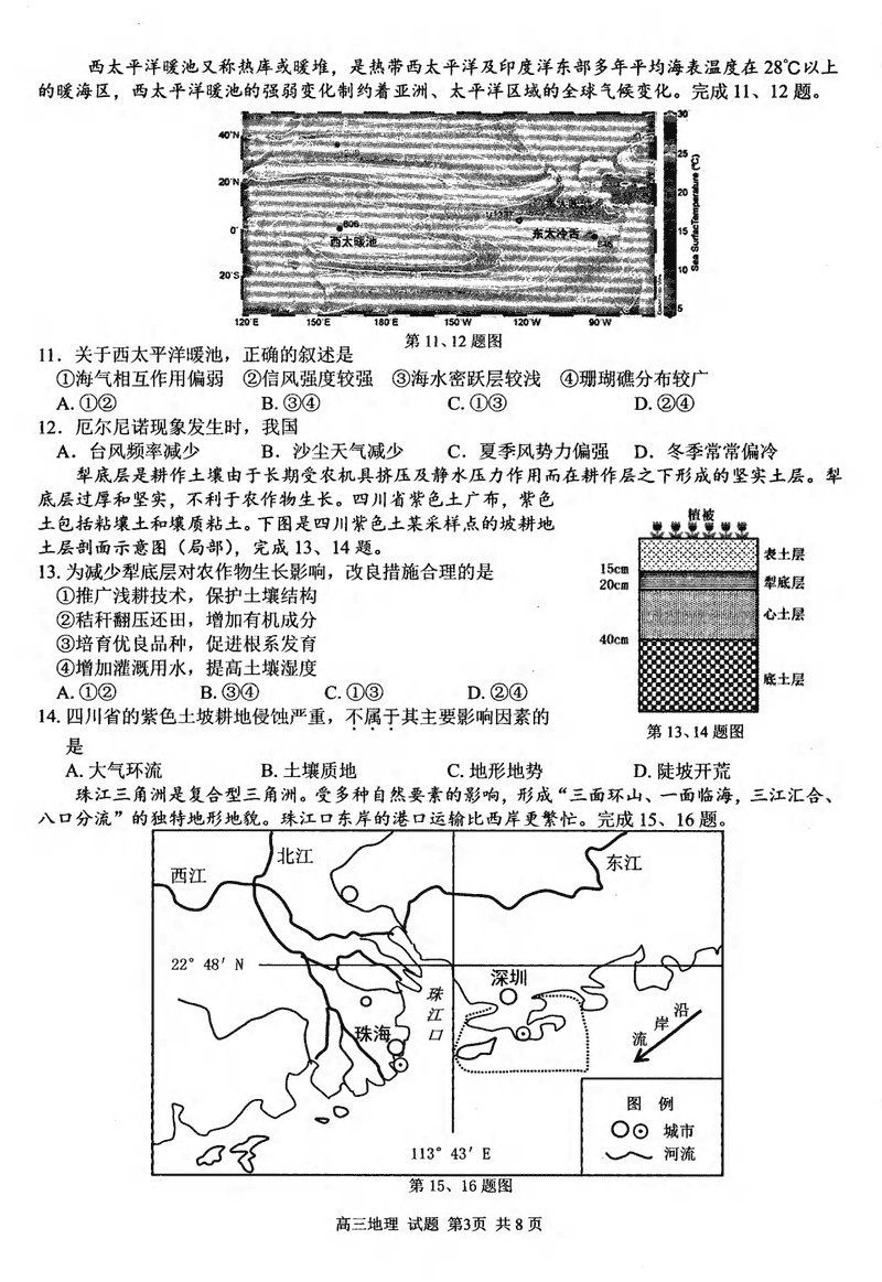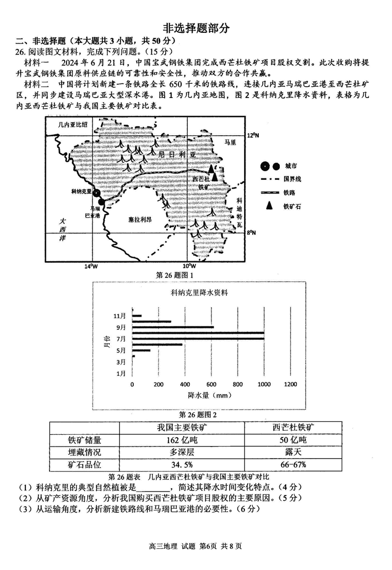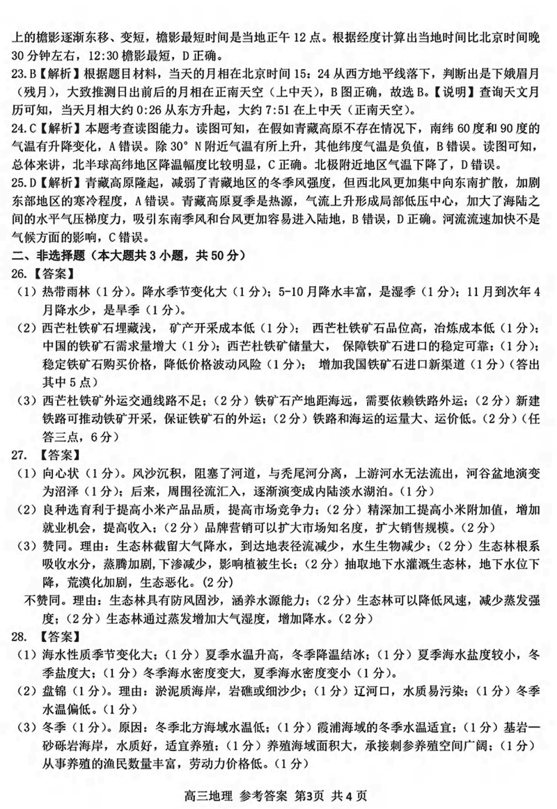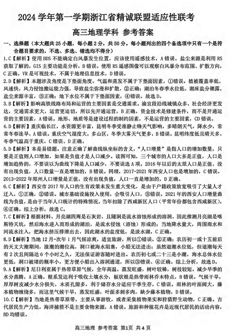 浙江精诚联盟2024学年12月高三上联考地理试题及答案